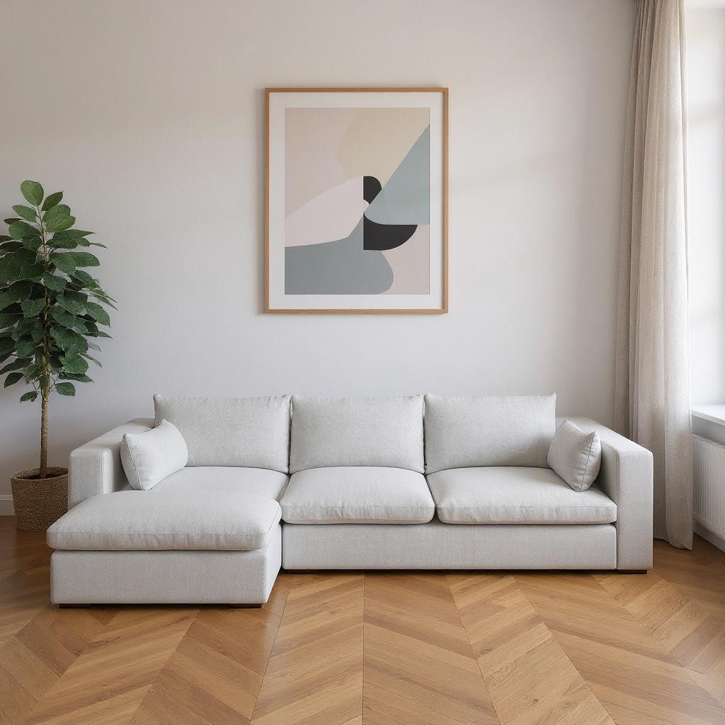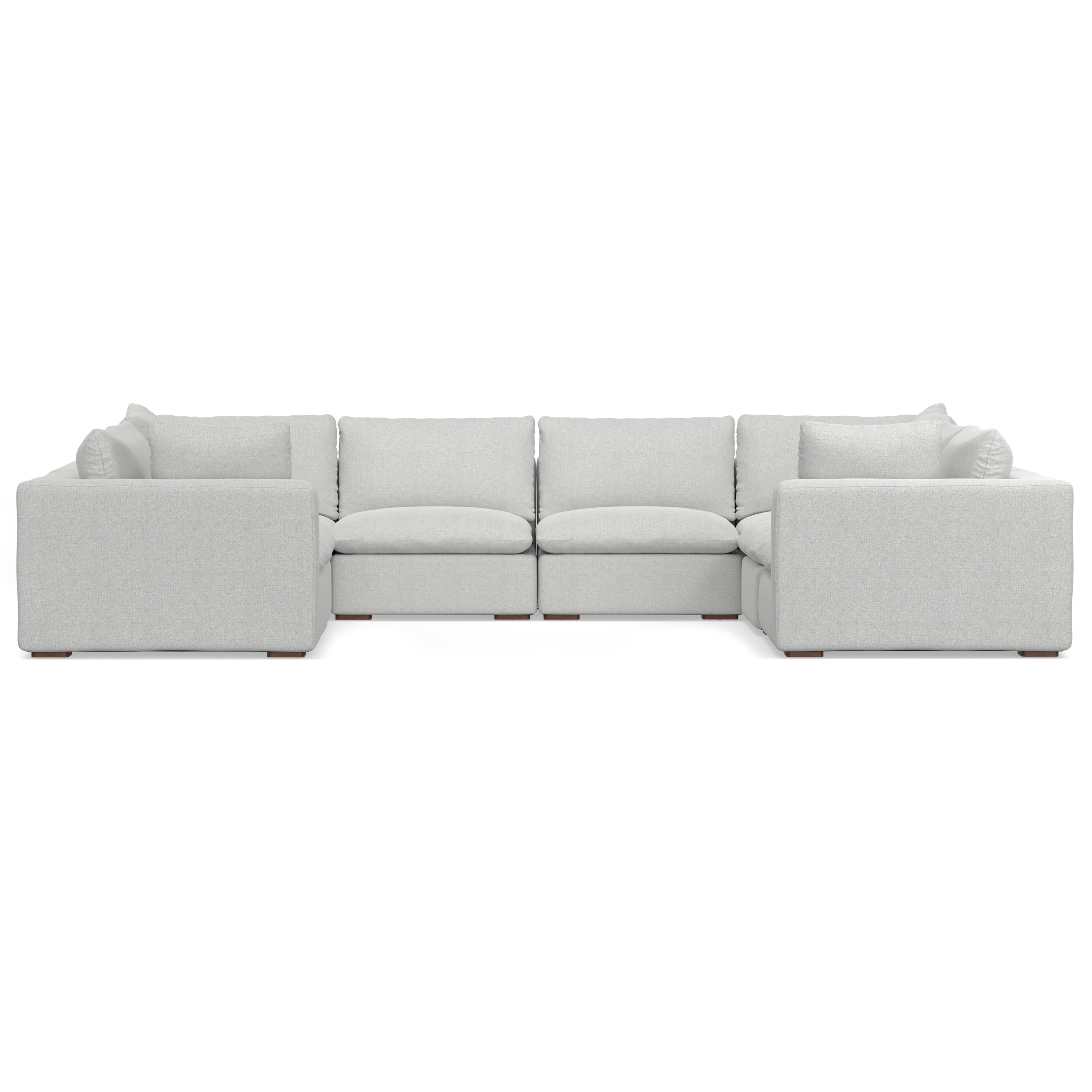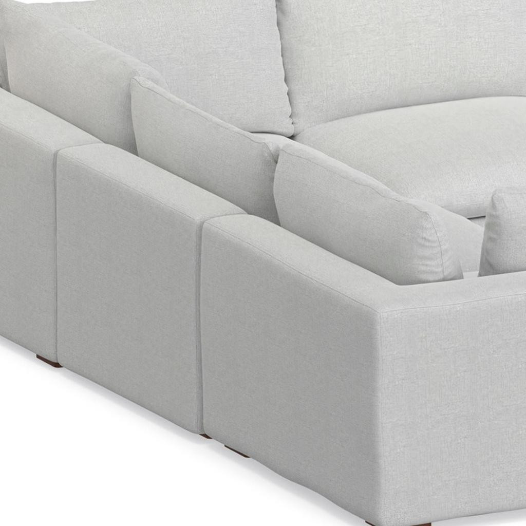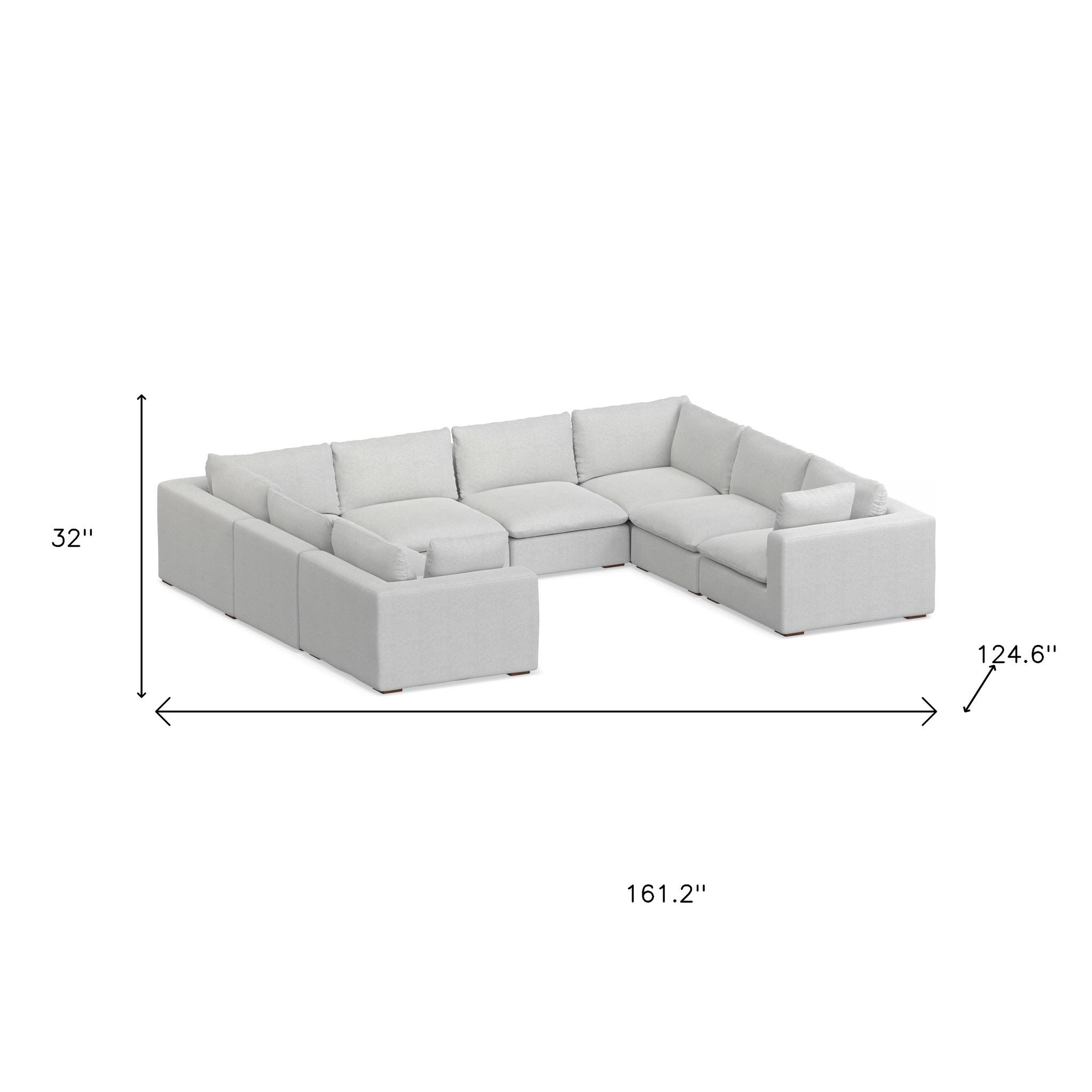 Add an air of fashion to your space with this fabulous 161-inch gray fabric modular wood sofa. Solid colors give you lots of decorative options and are easy to work into your decor scheme. Web suspension construction gives this piece strong support and makes it comfortable to sit even for long periods of time. Removable back cushions make this sofa easy to manage. Fixed arms offer a comfy place to rest. Built to last, this sofa will be a great centerpiece for your room. 32.00-inch h x 161.20-inch w x 124.60-inch d.
