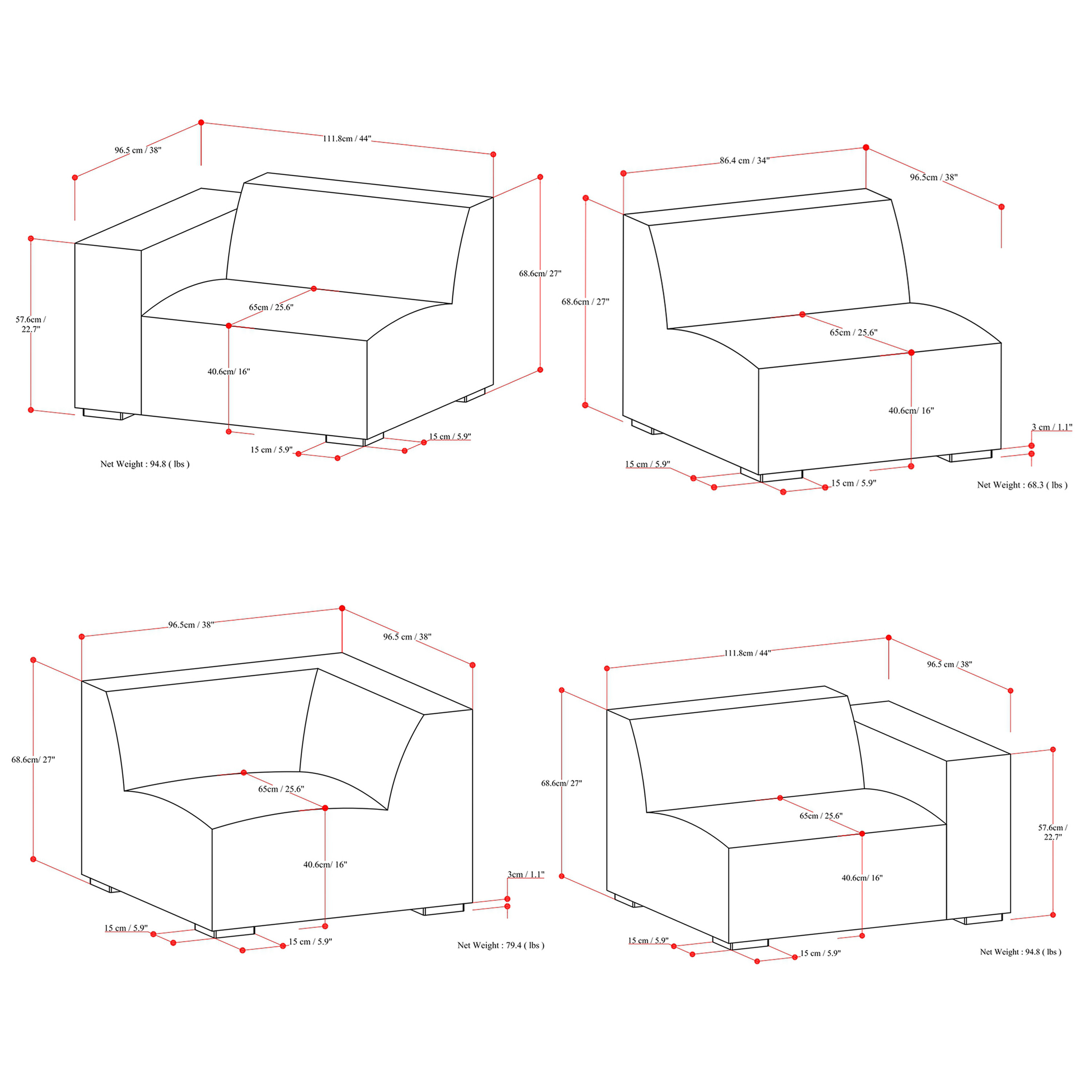 | Removable Cushions: |