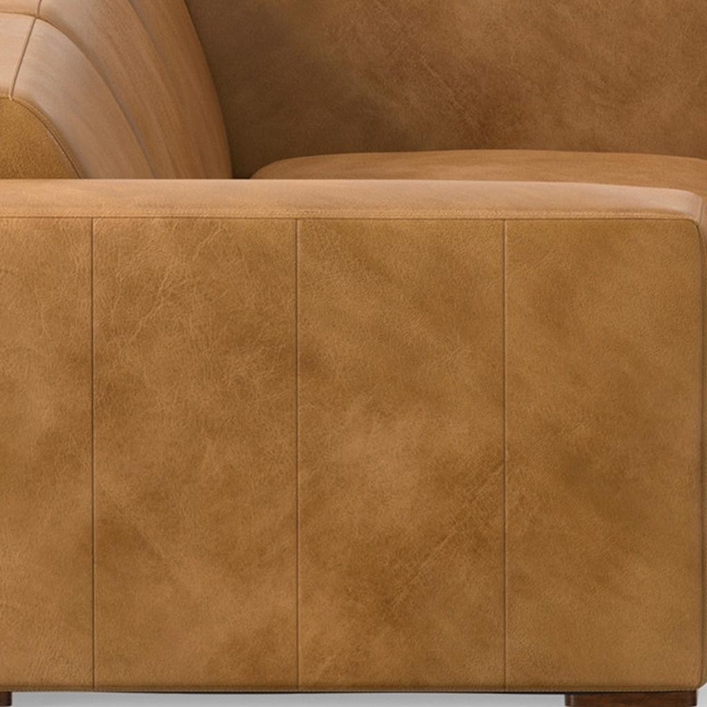 Superior construction from fabulously soft and high grade leather gives this 144-inch sienna leather modular wood sofa a leg up on the competition. The premium leather used makes your lounging luxuriously comfortable and adds an elegant appeal to your space. Solid colors give you lots of decorative options and are easy to work into your decor scheme. Web suspension construction gives this piece strong support and makes it comfortable to sit even for long periods of time. Fixed arms offer a comfy place to rest. A great showpiece for your room, this sofa is a must have. 27.00-inch h x 144.00-inch w x 116.00-inch d.