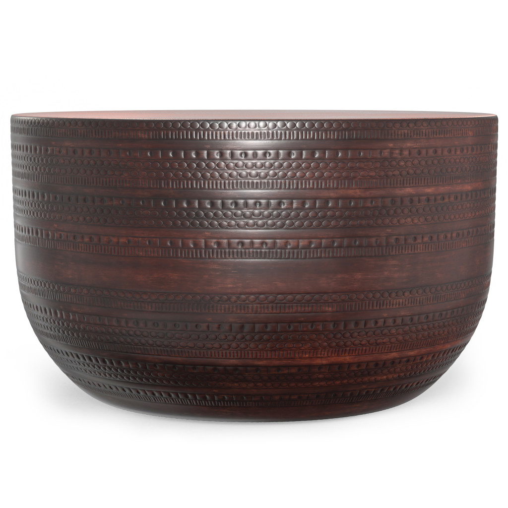 metal round drum end table, round drum end table, drum end table, bronze metal round drum end, 18" bronze metal round drum |