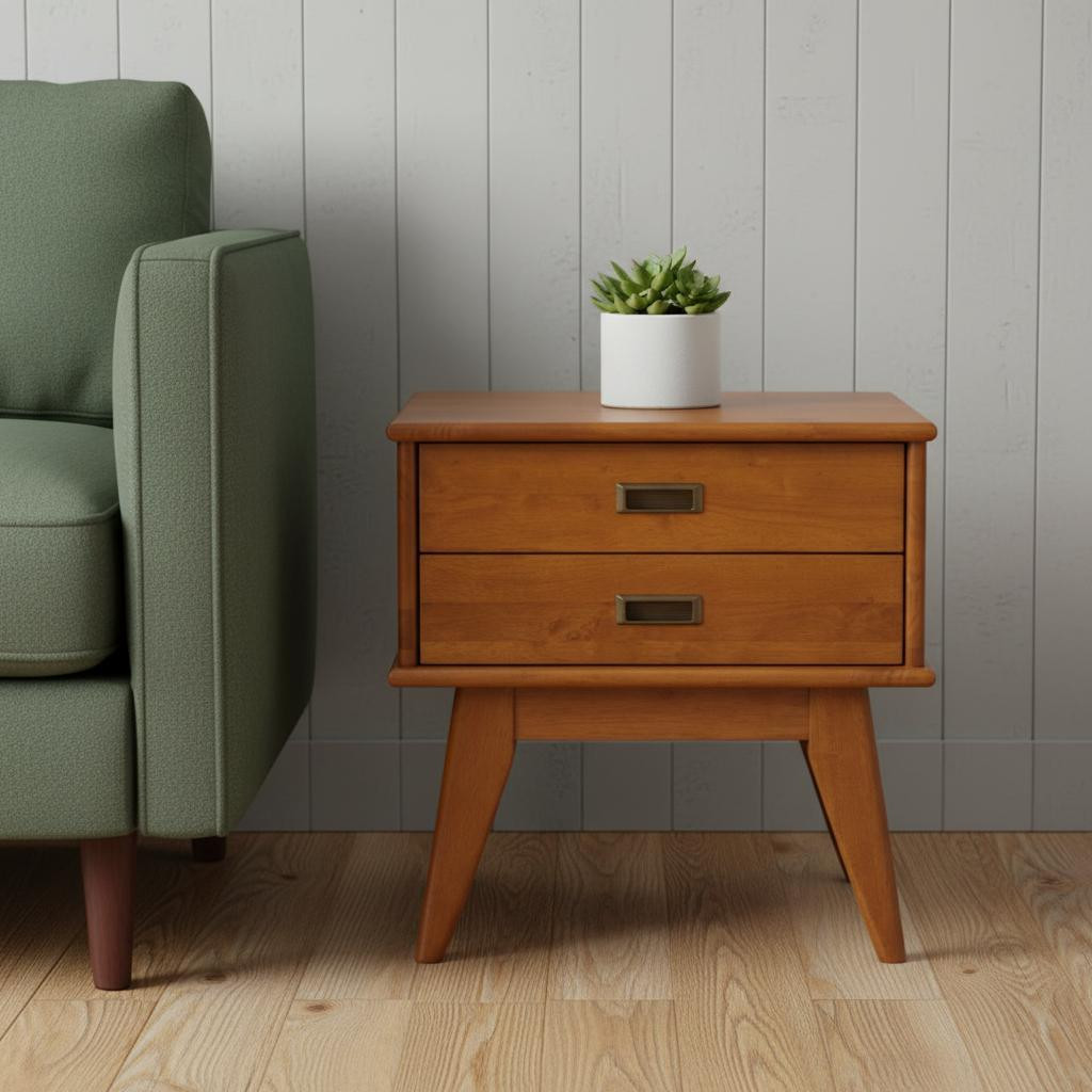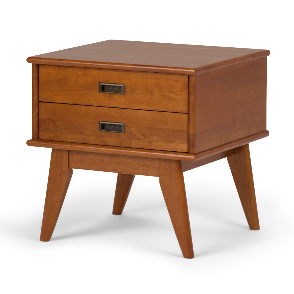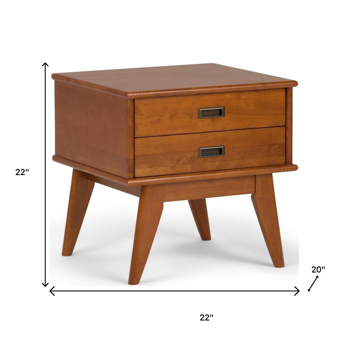 Distinctive in style the 22-inch brown wood end table radiates a versatile charm. Made of manufactured wood, the brown coloration throughout gives this piece an updated and refreshing look. An ideal location for placing your snacks and drinks, and a place to keep your lamp, frames, or other accessories. You can also use it as an entryway table to hold your keys. 22.00-inch h x 22.00-inch w x 20.00-inch d.