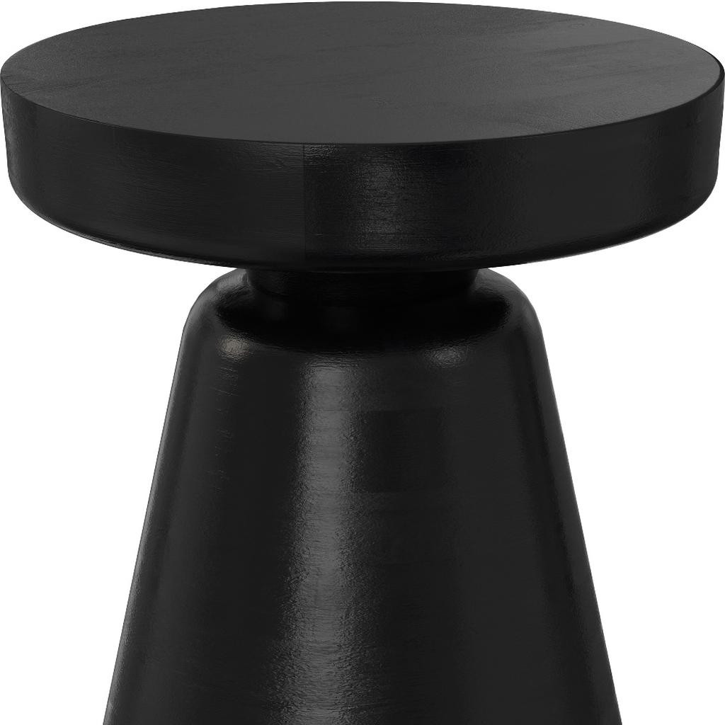 Optimize your space and add some charm to your room with the 18-inch black solid wood round end table. This table features quality construction from solid wood and an updated monotone color scheme with black as the main color on both the top and the base. An ideal location for placing your snacks and drinks, and a place to keep your lamp, frames, or other accessories. You can match it with other pieces to get the ideal look for your place. 18.00-inch h x 16.00-inch w x 16.00-inch d.