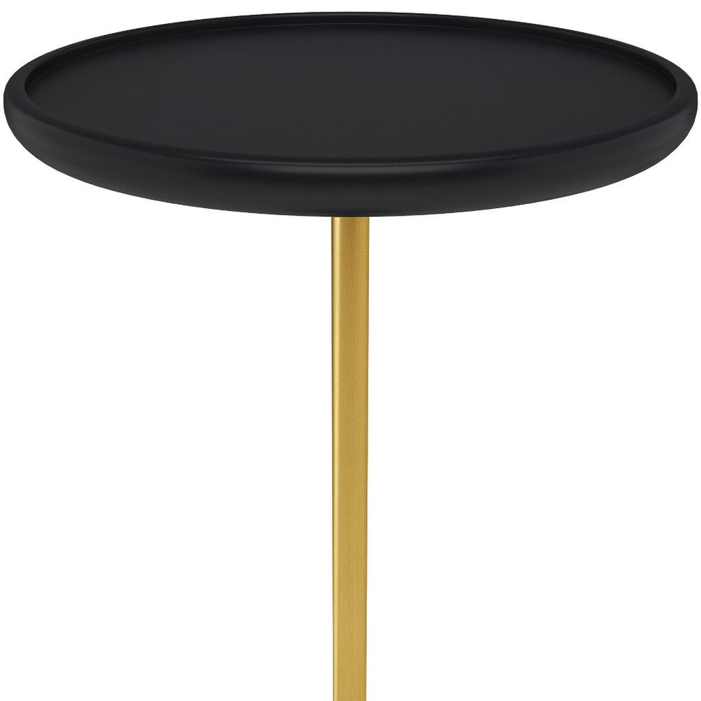 Show off your exquisite taste with this 23-inch black iron round end table. Made of iron, the black coloration throughout gives this piece an updated and refreshing look. An ideal location for placing your snacks and drinks, and a place to keep your lamp, frames, or other accessories. You can also use it as an entryway table to hold your keys. 22.80-inch h x 12.00-inch w x 12.00-inch d.