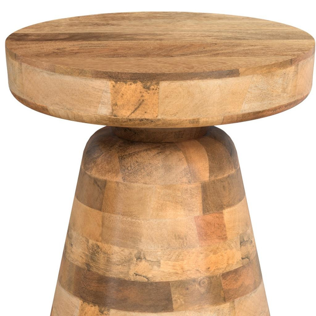 Optimize your space and add some charm to your room with the 18-inch natural solid wood round end table. Made of solid wood, the natural coloration throughout gives this piece an updated and refreshing look. An ideal location for placing your snacks and drinks, and a place to keep your lamp, frames, or other accessories. You can also use it as an entryway table to hold your keys. 18.00-inch h x 16.00-inch w x 16.00-inch d.