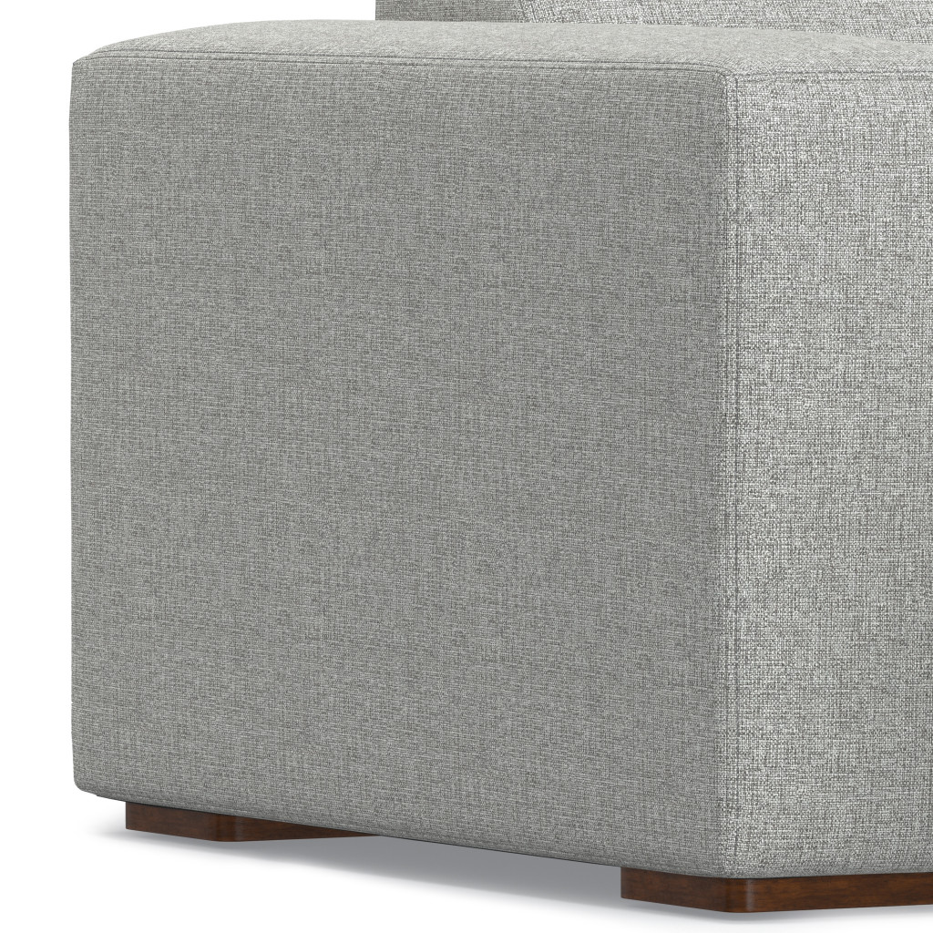 Unique and decorative, this 44-inch gray and brown fabric arm chair will leave a lasting impression. This sturdy fabric upholstered arm chair comes in a chic solid gray color to give your space just the right look. The high quality solid and manufactured wood inner frame flaunts convenient armrests and a tufted back that are complimented by soft and comfortable cushioning. 27.00-inch h x 44.00-inch w x 69.50-inch d.