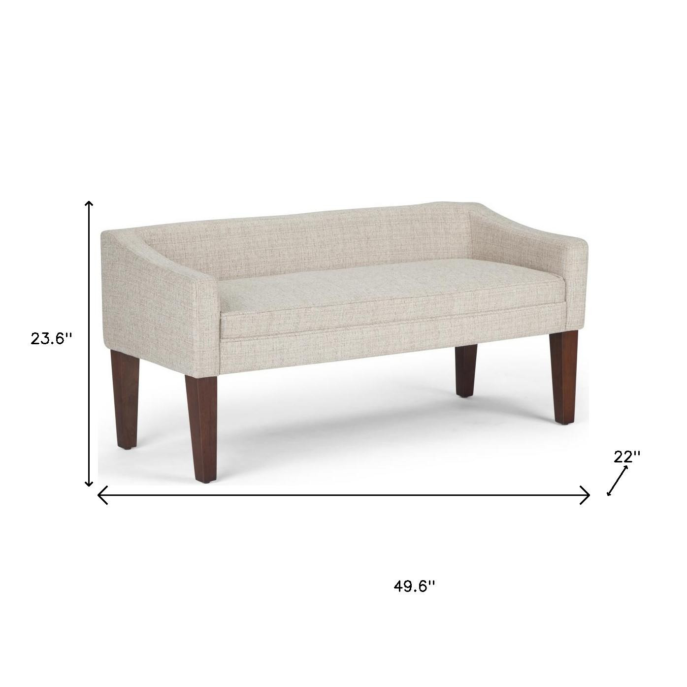 Add a good looking decorative accent to your space that is also practical for seating. A brown manufactured wood frame is finished off with a platinum solid and manufactured wood seat that is the epitome of quality construction and design. Expertly upholstered with padding in a soft solid color polyester, this bench is as comfortable as it is good looking. An included back gives this bench an extra opportunity to keep you supported and comfortable. Ideal for entrance foyer, hallway, or laundry room. This bench is a great place store your keys, put on your shoes, or be a catchall on your way in or out. Easy to blend into most any room, a bench is a way to add a good looking accent to your space that can also be practical and useful. 23.60-inch h x 49.60-inch w x 22.00-inch d.