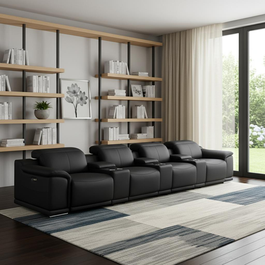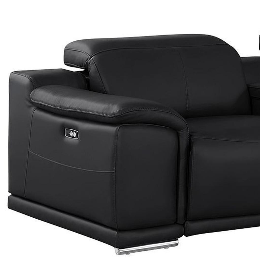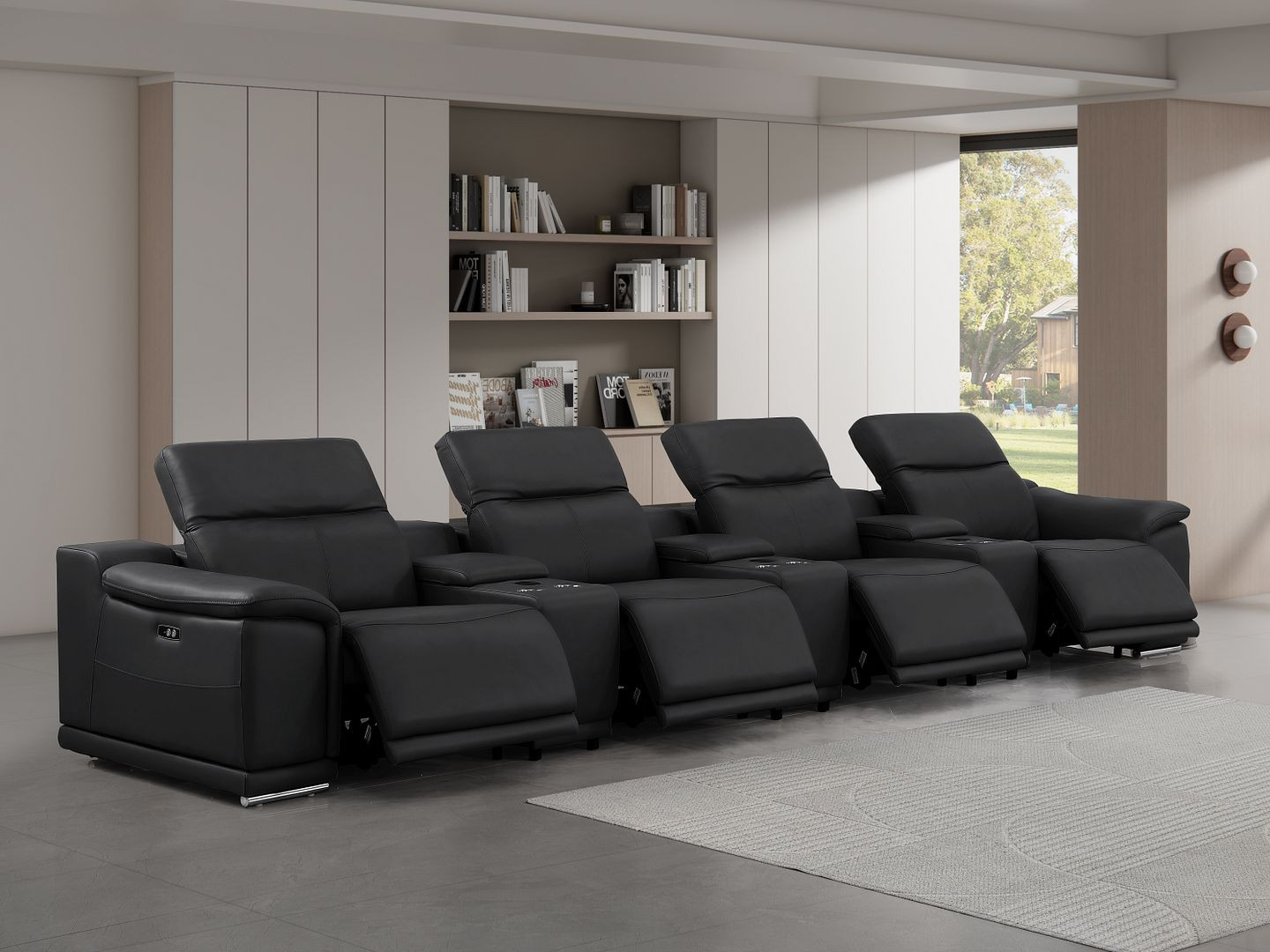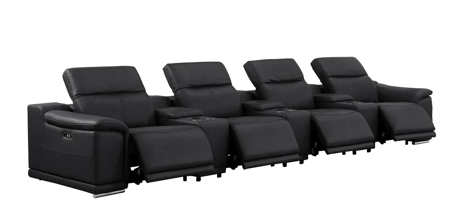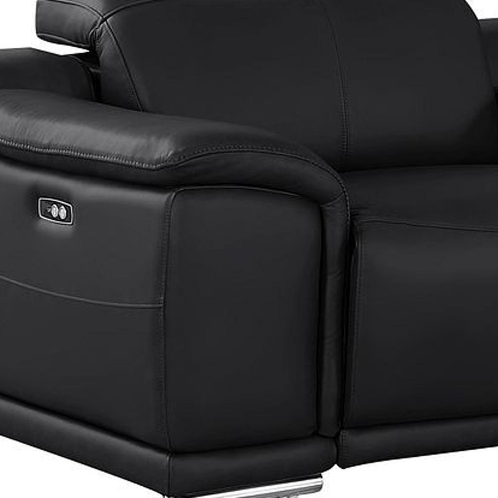 Superior construction from fabulously soft and high grade leather gives this 175-inch black top grain leather reclining usb sofa and storage a leg up on the competition. The premium leather used makes your lounging luxuriously comfortable and adds an elegant appeal to your space. Solid colors give you lots of decorative options and are easy to work into your decor scheme. Pocket spring construction gives this piece strong support and makes it comfortable to sit even for long periods of time. Round arms offer a comfy place to rest. Silver stainless steel legs effortlessly elevate the room and add a touch of contemporary design. A great showpiece for your room, this sofa is a must have. 31.00-inch h x 175.00-inch w x 41.00-inch d.