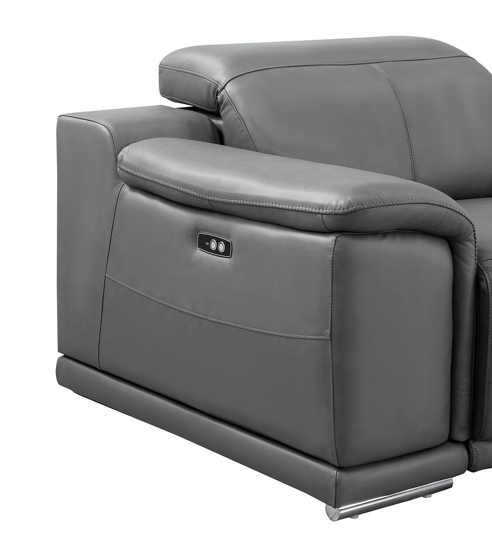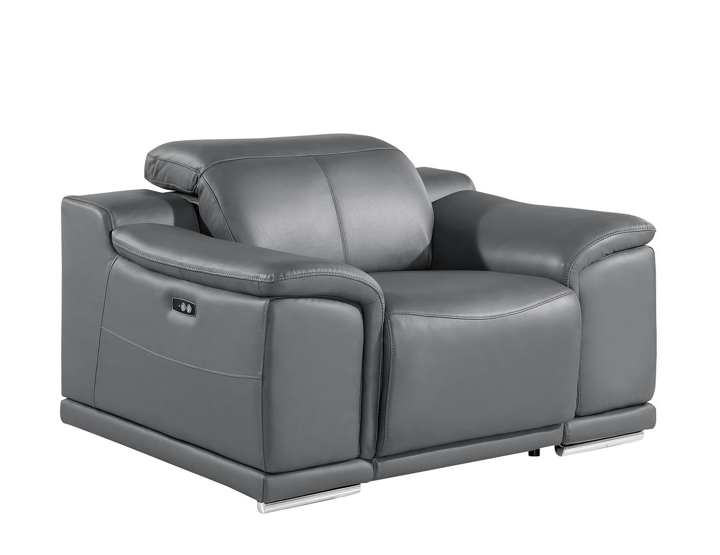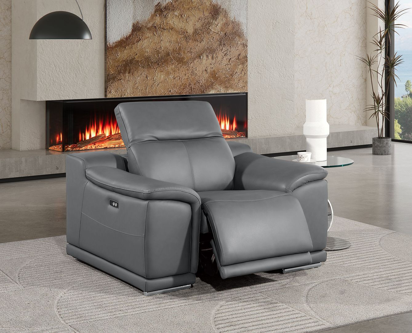 Achieve maximum comfort and relaxation with the 39-inch battleship gray genuine leather wall hugger power recliner with usb. Upholstered in high grade, genuine leather, this chair will provide a soft and luxurious way for you to relax and rest. The push-button controls make it easy to adjust the angle of your recline. A space-saving option, this wall hugger recliner can be installed in close proximity to the wall because it requires minimal clearance. Whether you are starting your day, ending your day, or sneaking in a cat nap in between, this chair is a welcome addition to your space and self-care routine. Take relaxation to the next level with this comfy reclining chair. 47.60-inch h x 39.40-inch w x 42.30-inch d.