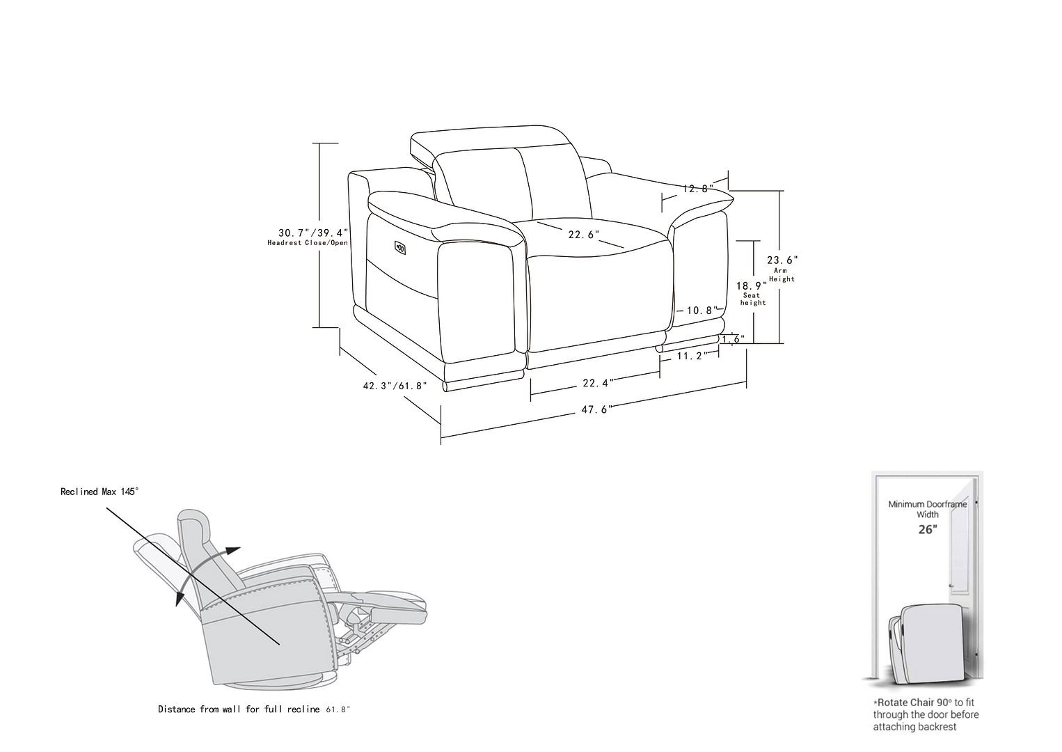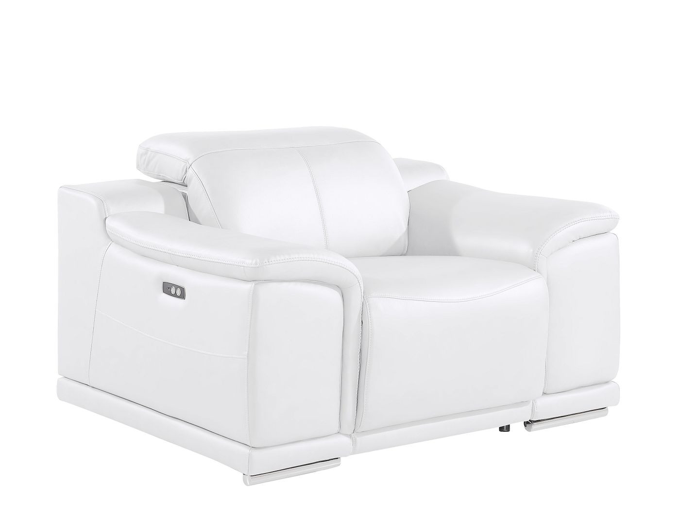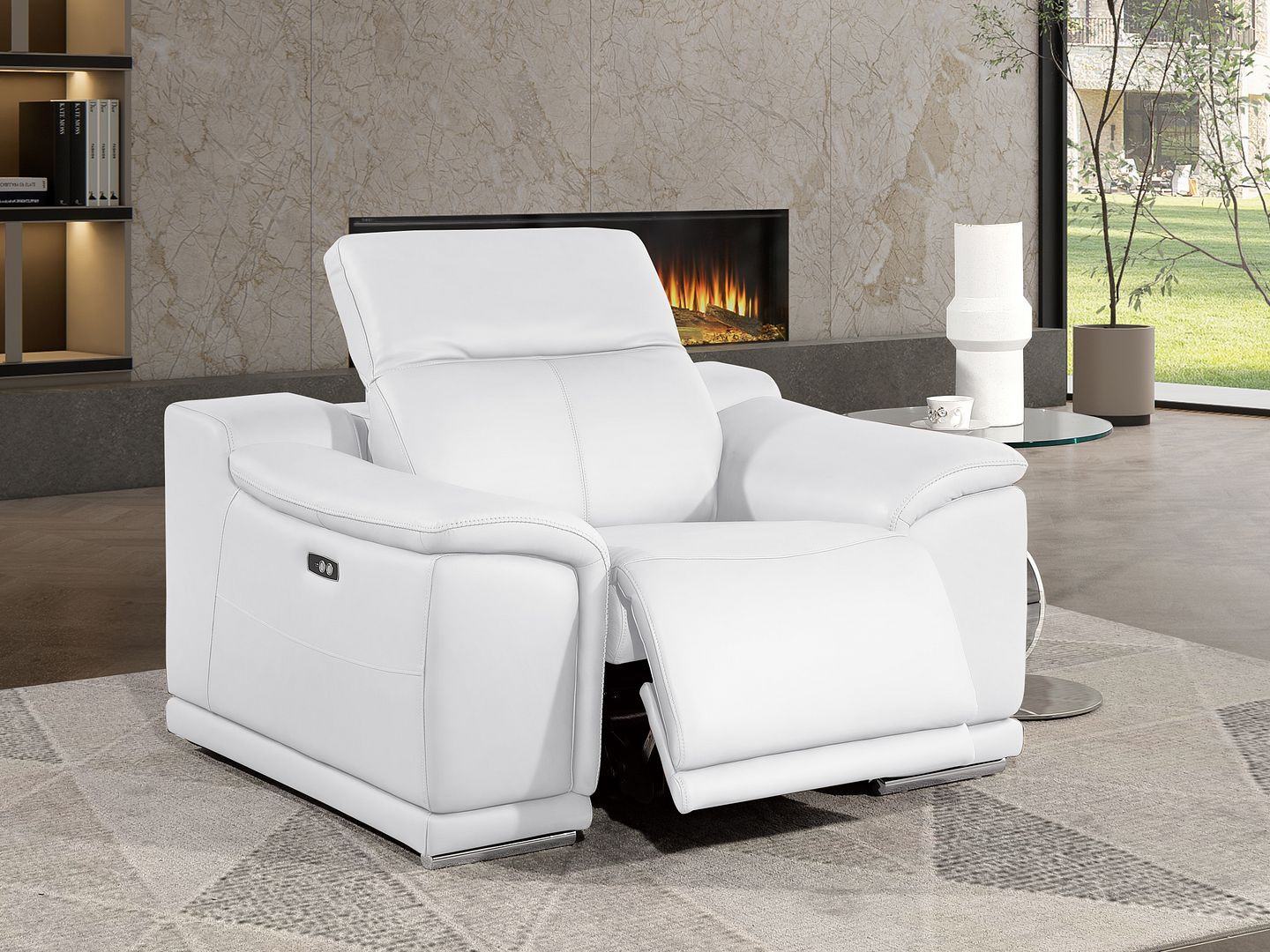 Kick back and relax in this 39-inch white genuine leather wall hugger power recliner with usb while you're reading a novel or watching your favorite tv show. Designer grade genuine leather gives this reclining chair a level of class and comfort to make your seating experience exceptional every day. The white of this chair is neutral to will blend with most any décor aesthetic. The power push button mechanism will allow you to smoothly adjust to your most comfortable position. A space-saving option, this wall hugger recliner can be installed in close proximity to the wall because it requires minimal clearance. Whether you are starting your day, ending your day, or sneaking in a cat nap in between, this chair is a welcome addition to your space and self-care routine. Recliners are a comfortable and practical option for living room, family room, den, bedroom, or nursery. 47.60-inch h x 39.40-inch w x 42.30-inch d.