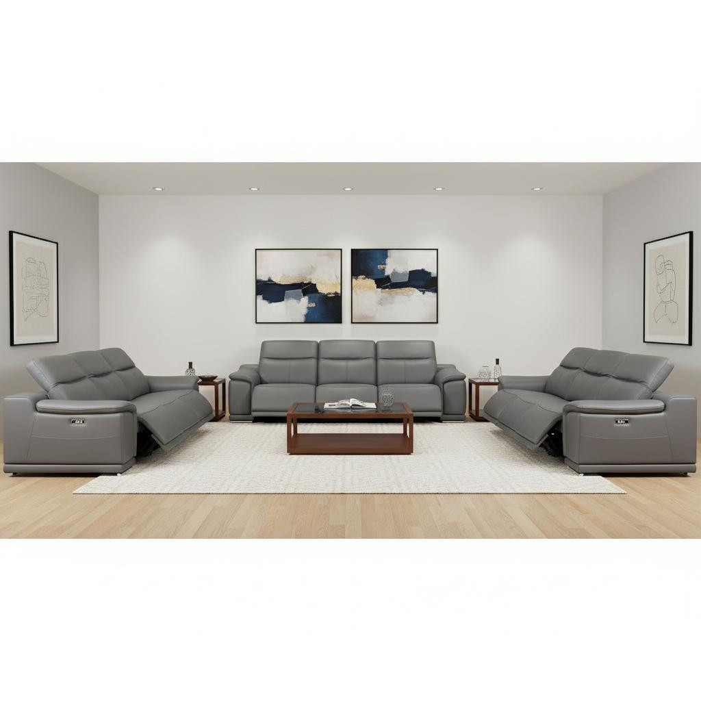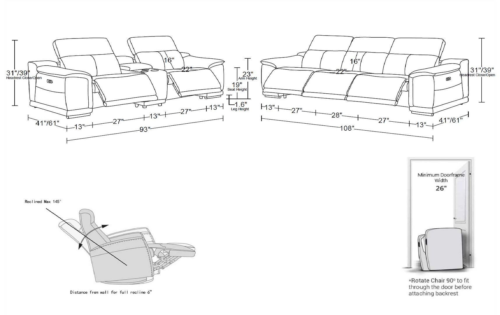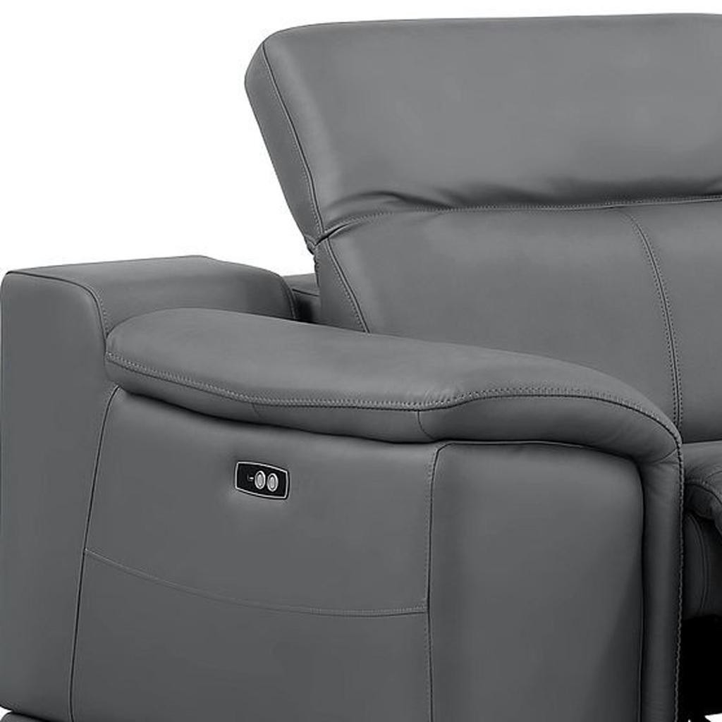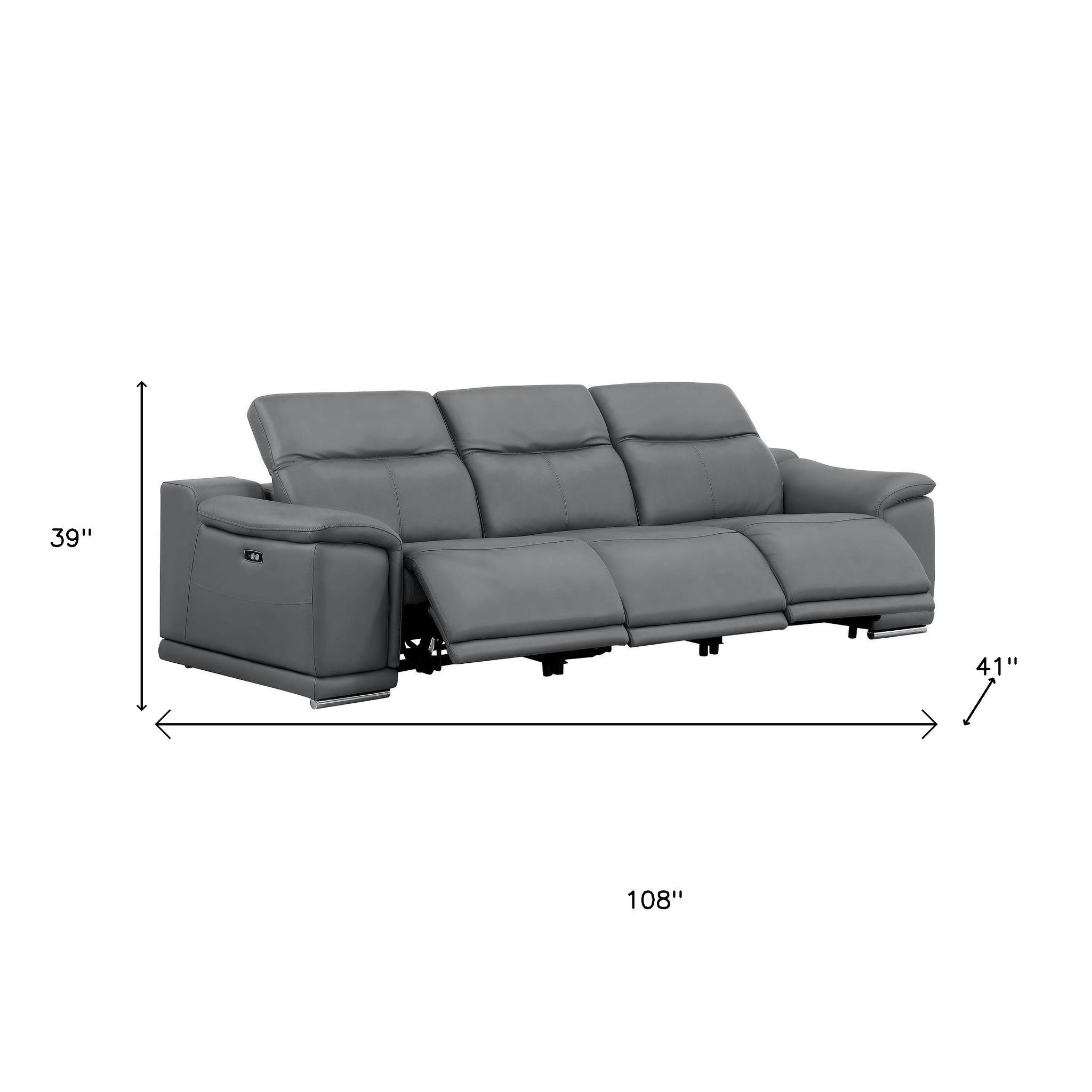 Prepare to amaze even the most discerning critics with our two piece battleship gray genuine leather five person seating set. The reclining sofa will transform your space into a cozy haven for leisurely activities, movie nights, or even quick power naps. Upholstered in supple and luxurious genuine leather, this set has a rich and warm appeal. Eight-way hand-tied spring seat construction provides excellent comfort by offering a responsive and supportive seating experience. The inclusion of a loveseat into your mix allows a fashionable seating option in a compact design. 39.00-inch h x 108.00-inch w x 41.00-inch d.