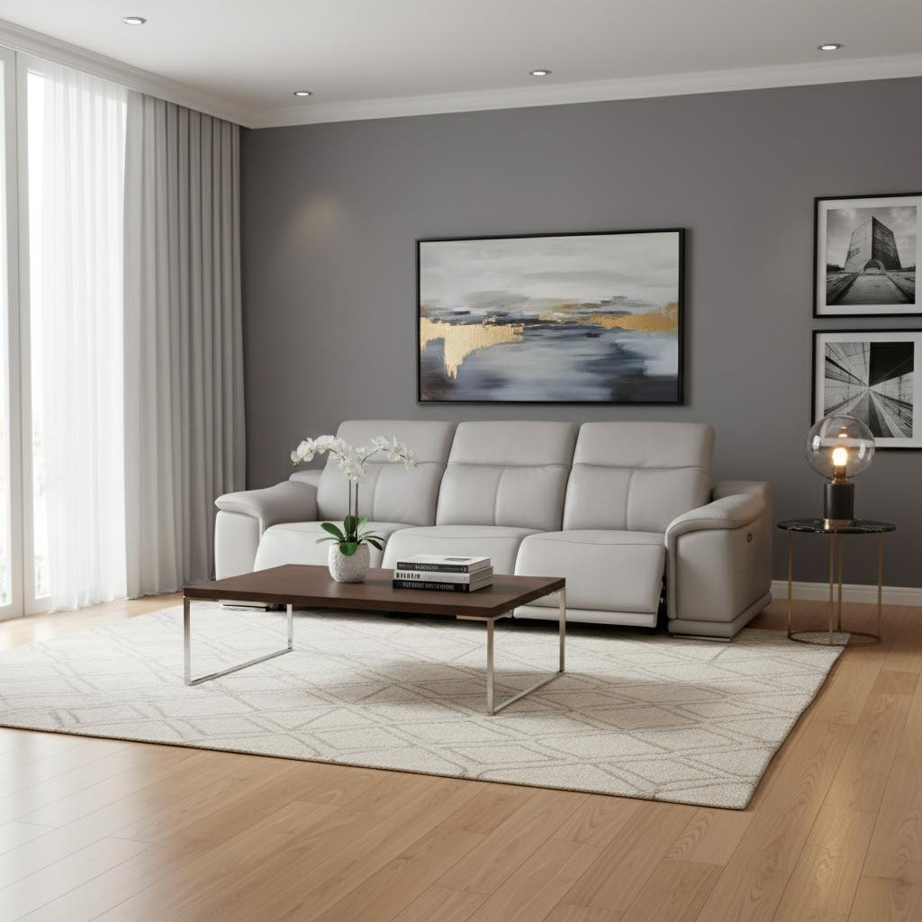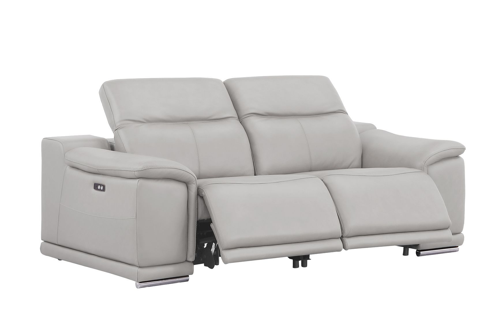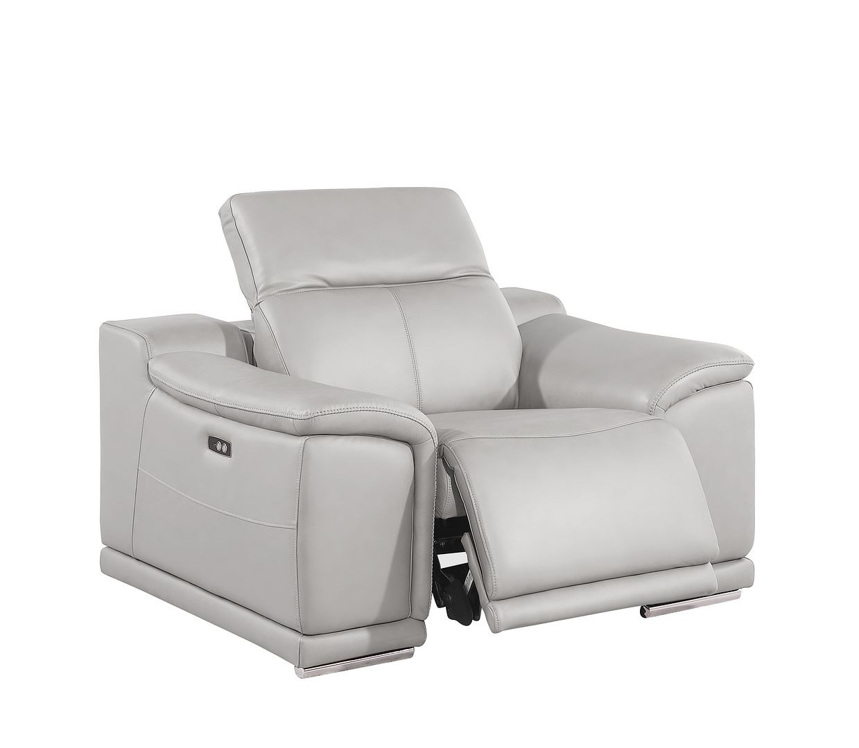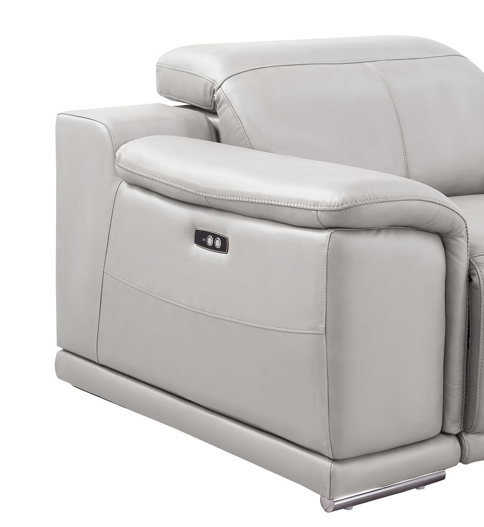Prepare to amaze even the most discerning critics with our three piece ash gray genuine leather six person seating set. Prepare to enter the realm of ultimate relaxation with this reclining sofa that offers unparalleled comfort and luxurious lounging. Upholstered in supple and luxurious genuine leather, this set has a rich and warm appeal. Eight-way hand-tied spring seat construction provides excellent comfort by offering a responsive and supportive seating experience. The inclusion of a loveseat into your mix allows a fashionable seating option in a compact design. 39.00-inch h x 108.00-inch w x 41.00-inch d.