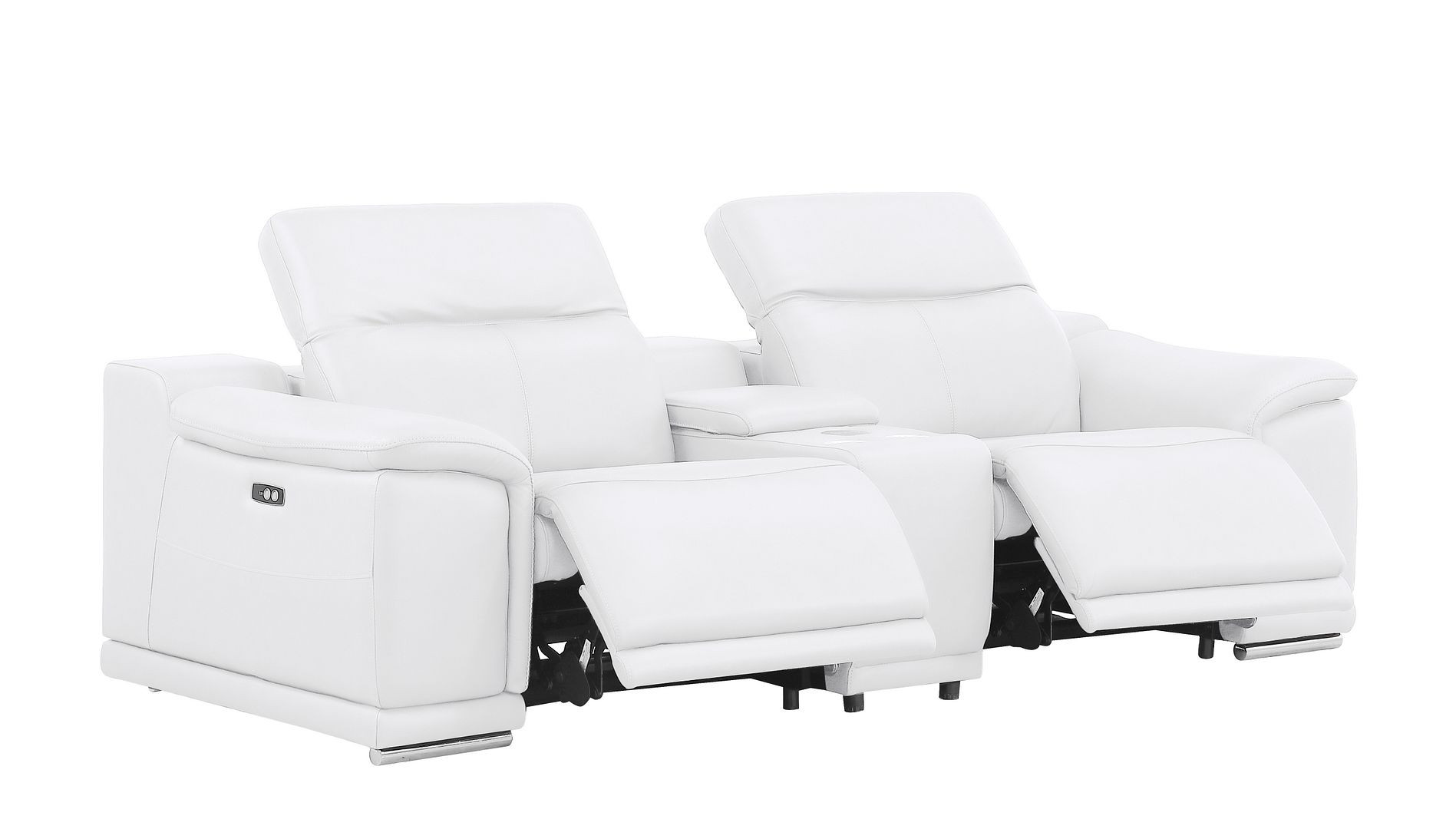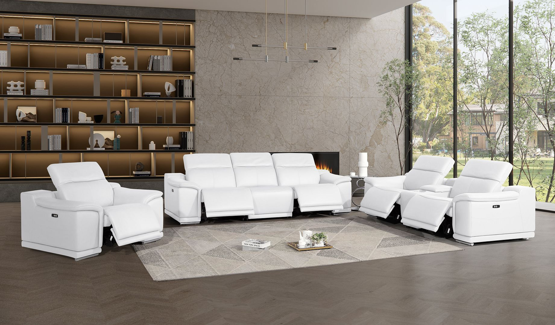 When it comes to indoor seating, this three piece white genuine leather five person seating set has everything you need to get set and ready to relax. The reclining sofa will transform your space into a cozy haven for leisurely activities, movie nights, or even quick power naps. Upholstered in supple and luxurious genuine leather, this set has a rich and warm appeal. The presence of eight-way hand-tied spring seat construction helps distribute weight evenly, reducing pressure points. The inclusion of a loveseat into your mix allows a fashionable seating option in a compact design. 39.00-inch h x 107.00-inch w x 41.00-inch d.