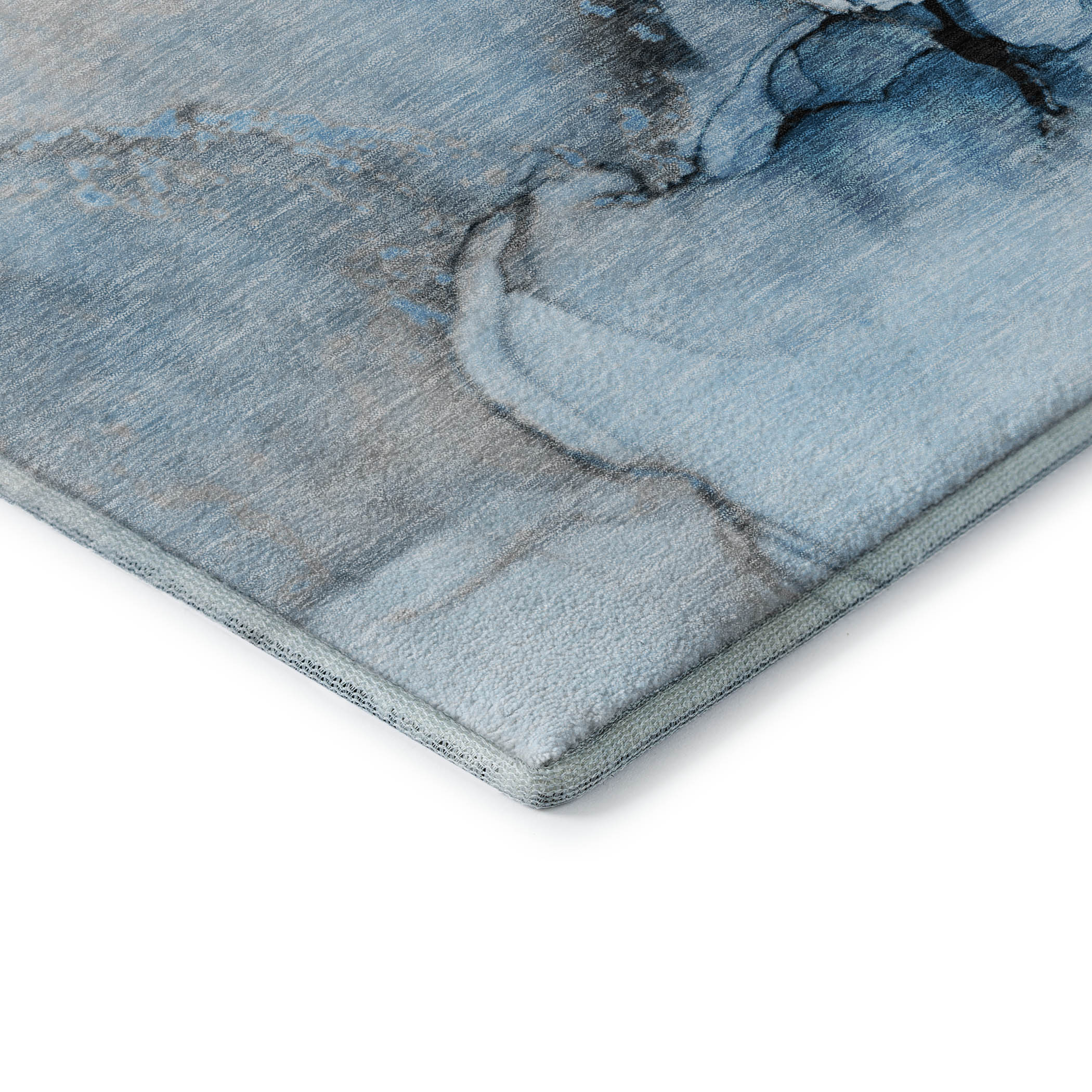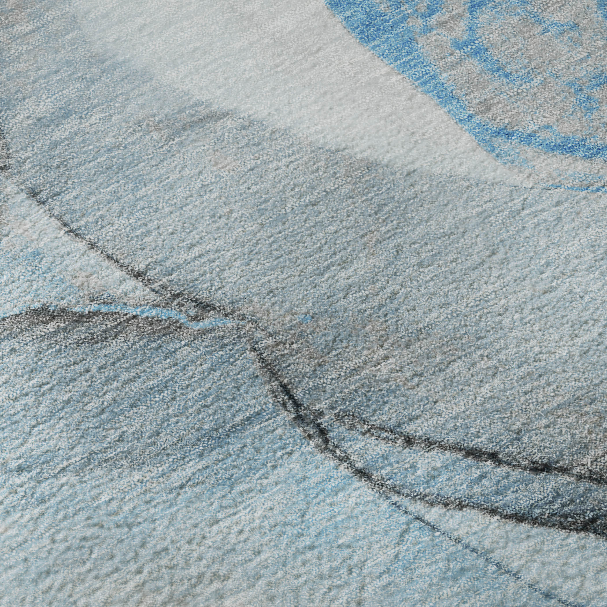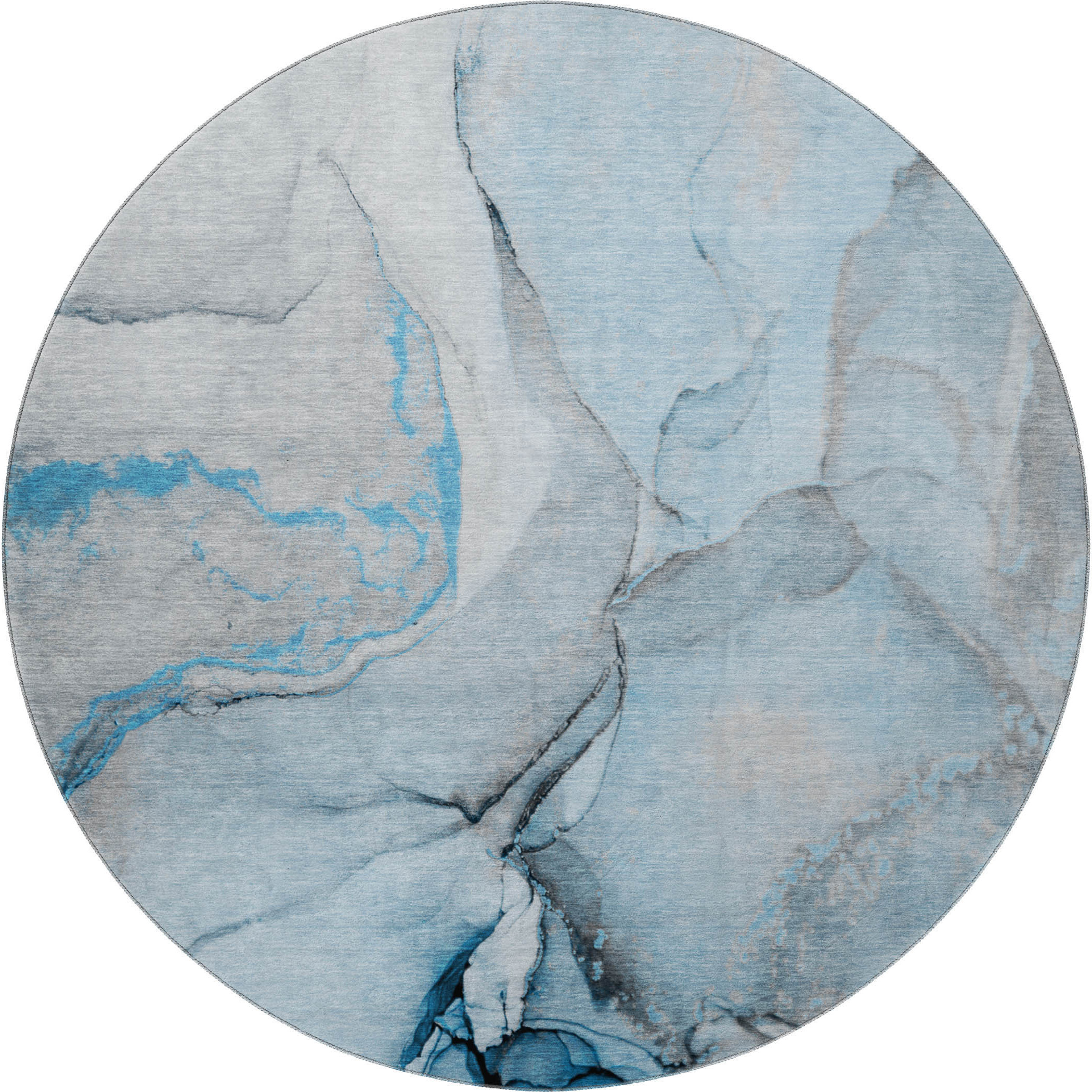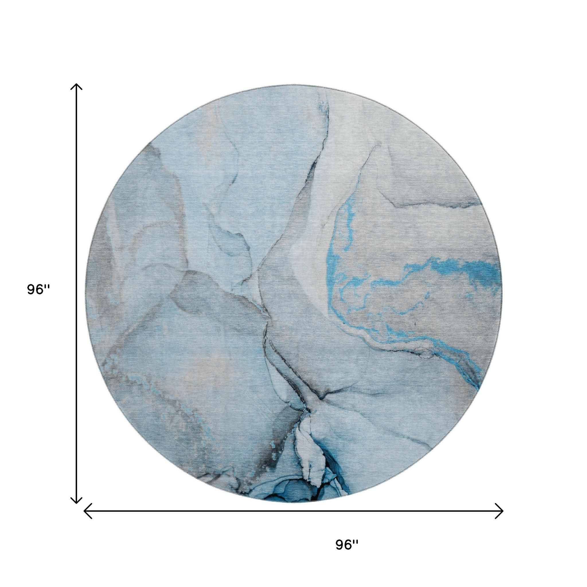 Add great coloration and comfortable texture to your space with this 8-foot blue gray and ivory abstract washable round rug with uv protection. Ideal for spaces with kids and pets, this rug is stain resistant to help repel dirt and spilled liquids. Built to last, this rug crafted from polyester fibers is known for its durability and long lasting appeal. Rugs are a great way to showcase your style, hide imperfections, warm your home and reduce noise. This larger sized, transitional styled rug is ready to create a focal point or statement piece in your room. 96.00-inch h x 96.00-inch w x 0.39-inch d.