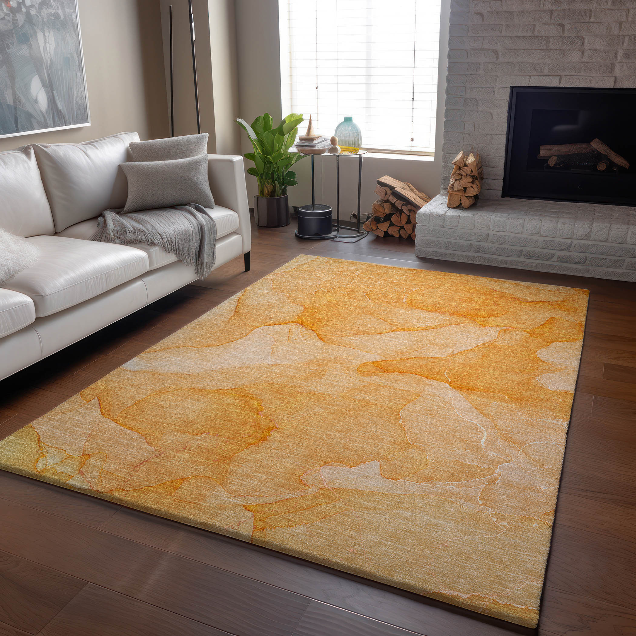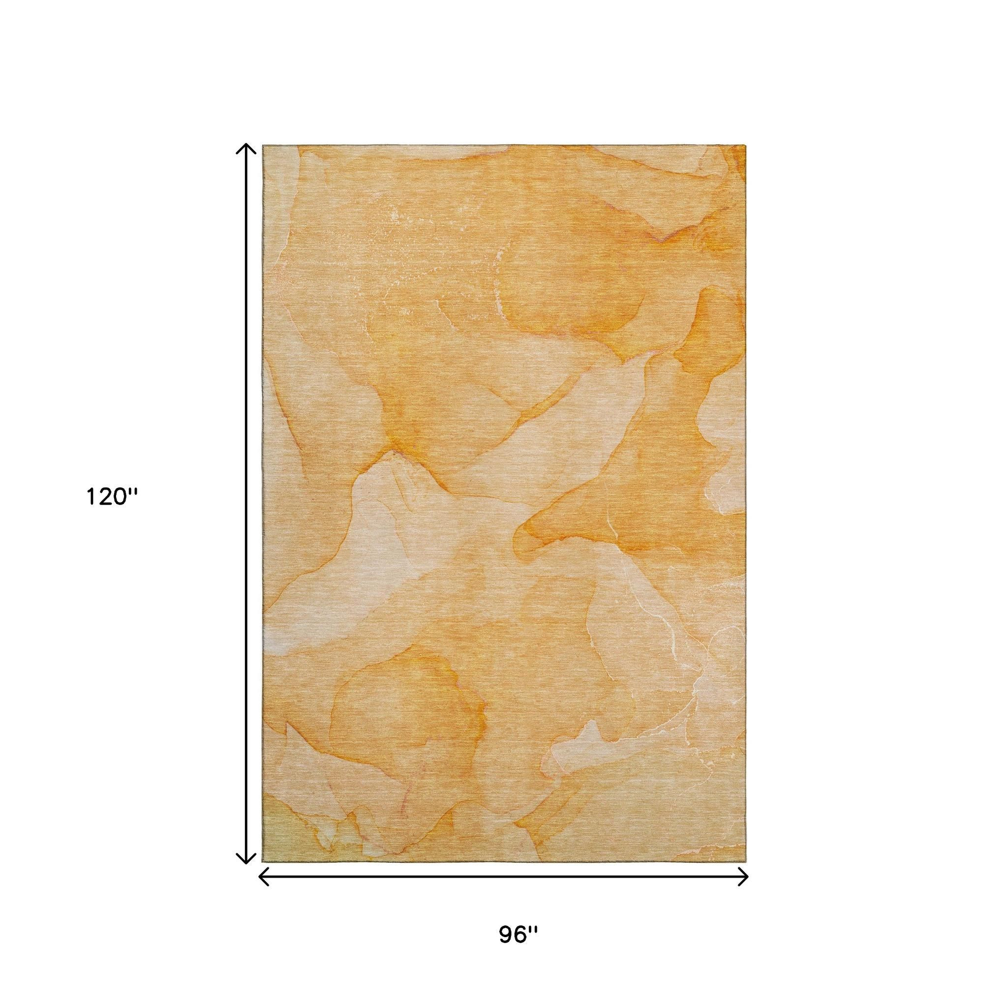 Set an inviting tone in your space with this 8-foot x 10-foot orange and ivory abstract washable area rug with uv protection. Ideal for spaces with kids and pets, this rug is stain resistant to help repel dirt and spilled liquids. Built to last, this rug crafted from polyester fibers is known for its durability and long lasting appeal. This larger sized, transitional styled rug is ready to create a focal point or statement piece in your room. 96.00-inch h x 120.00-inch w x 0.39-inch d.