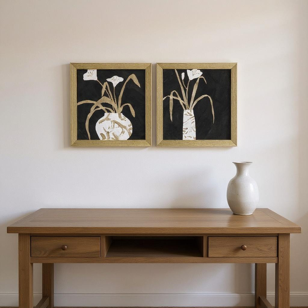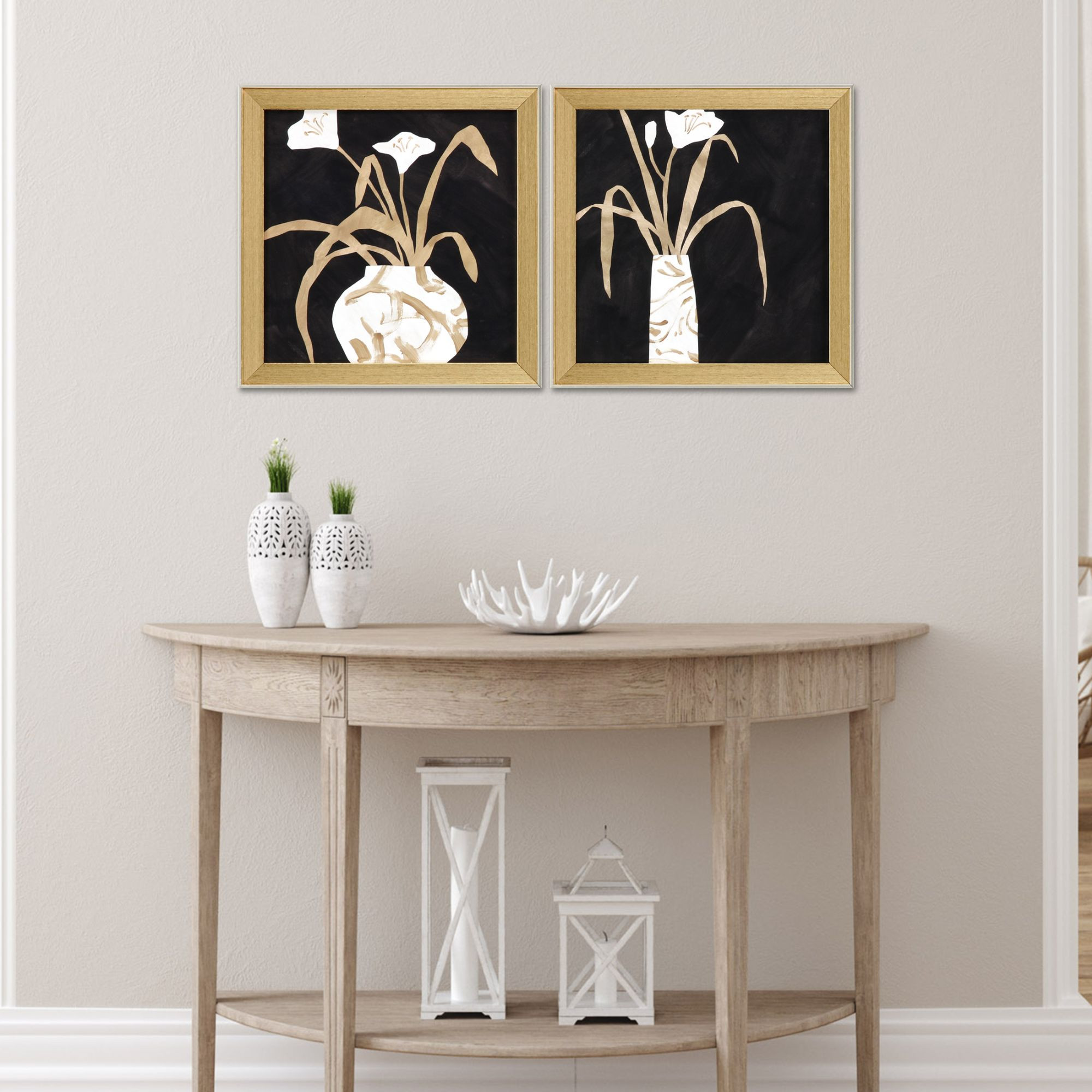 Bring some sizzle to your space with this eye-catching set of two simple life gold framed wall art. Reproduced for you on paper, this hanging decorative accent will be a trendy and fashionable way to dress your walls. Hang on your wall to add some up to date fashion and decoration. Utilize this opportunity to create a focal point in the room with this fabulous wall decor option. 14.00-inch h x 14.00-inch w x 2.00-inch d.