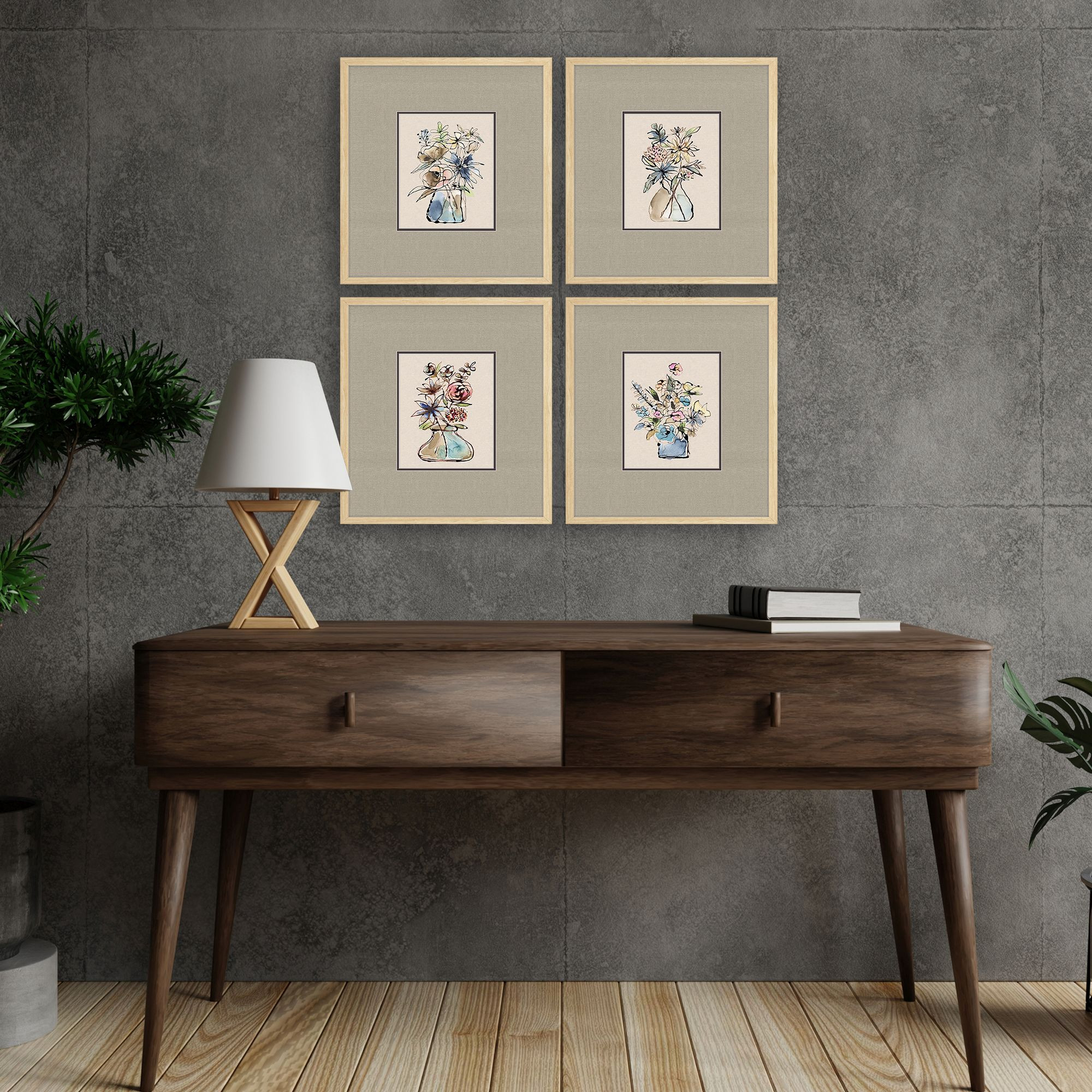 Bring some sizzle to your space with this eye-catching set of four floral sketch brown framed wall art. Reproduced for you on paper, this hanging decorative accent will be a trendy and fashionable way to dress your walls. Hang on your wall to add some up to date fashion and decoration. Instantly liven up your space with this art that brings color and dimension to your walls. 20.00-inch h x 18.00-inch w x 1.00-inch d.