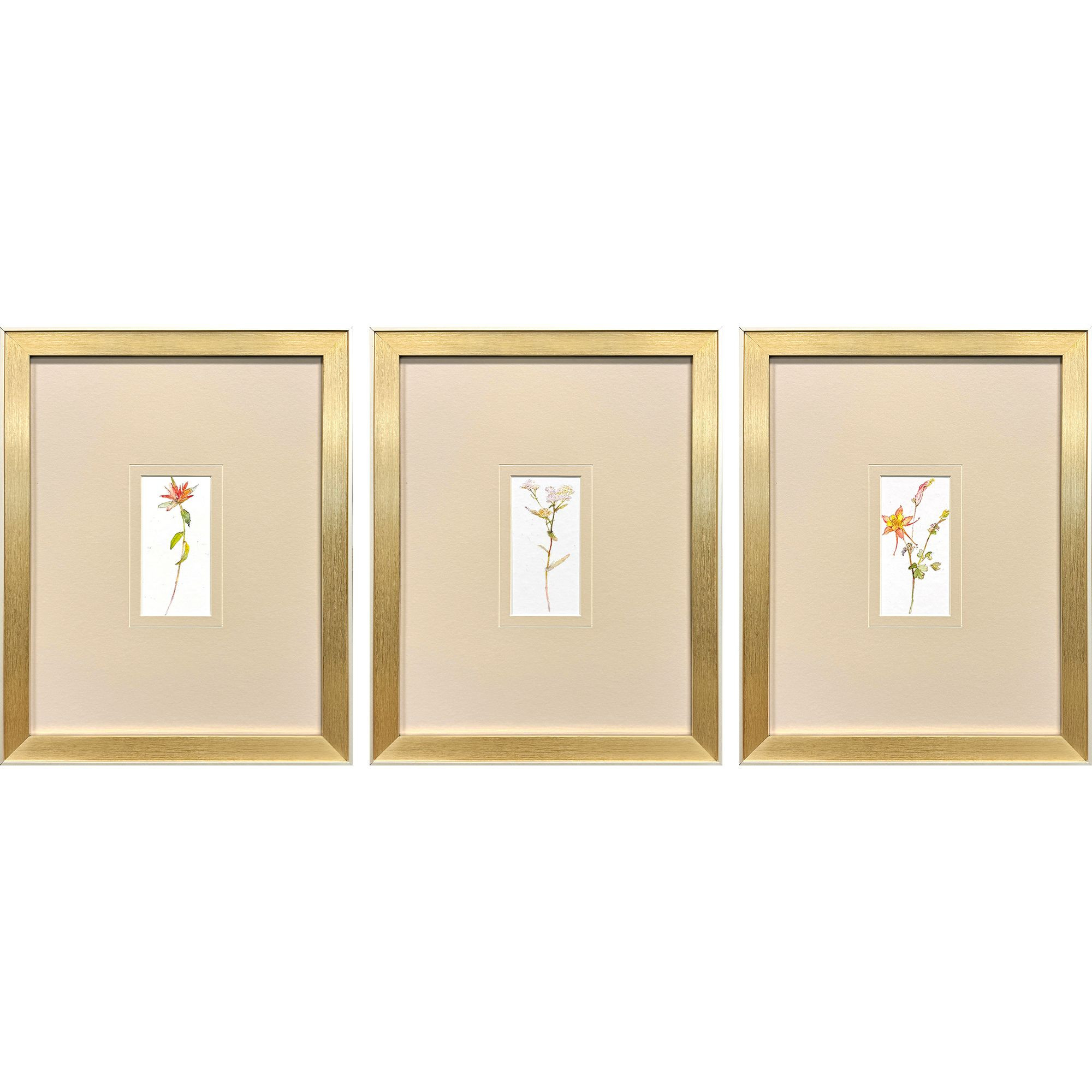 Add an air of fashion to your room and rejuvenate the space with this set of three pretty florals ii gold framed wall art. Reproduced for you on paper, this hanging decorative accent will be a trendy and fashionable way to dress your walls. Adding this hanging wall art to your space to make your room feel more finished and attractive. Instantly liven up your space with this art that brings color and dimension to your walls. 17.00-inch h x 14.00-inch w x 2.00-inch d.