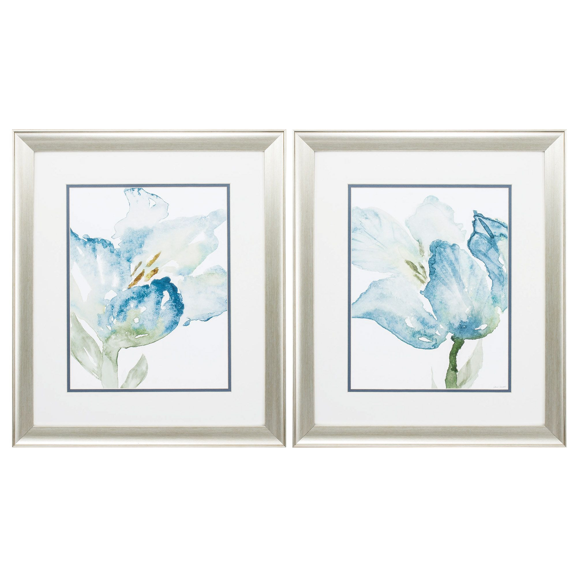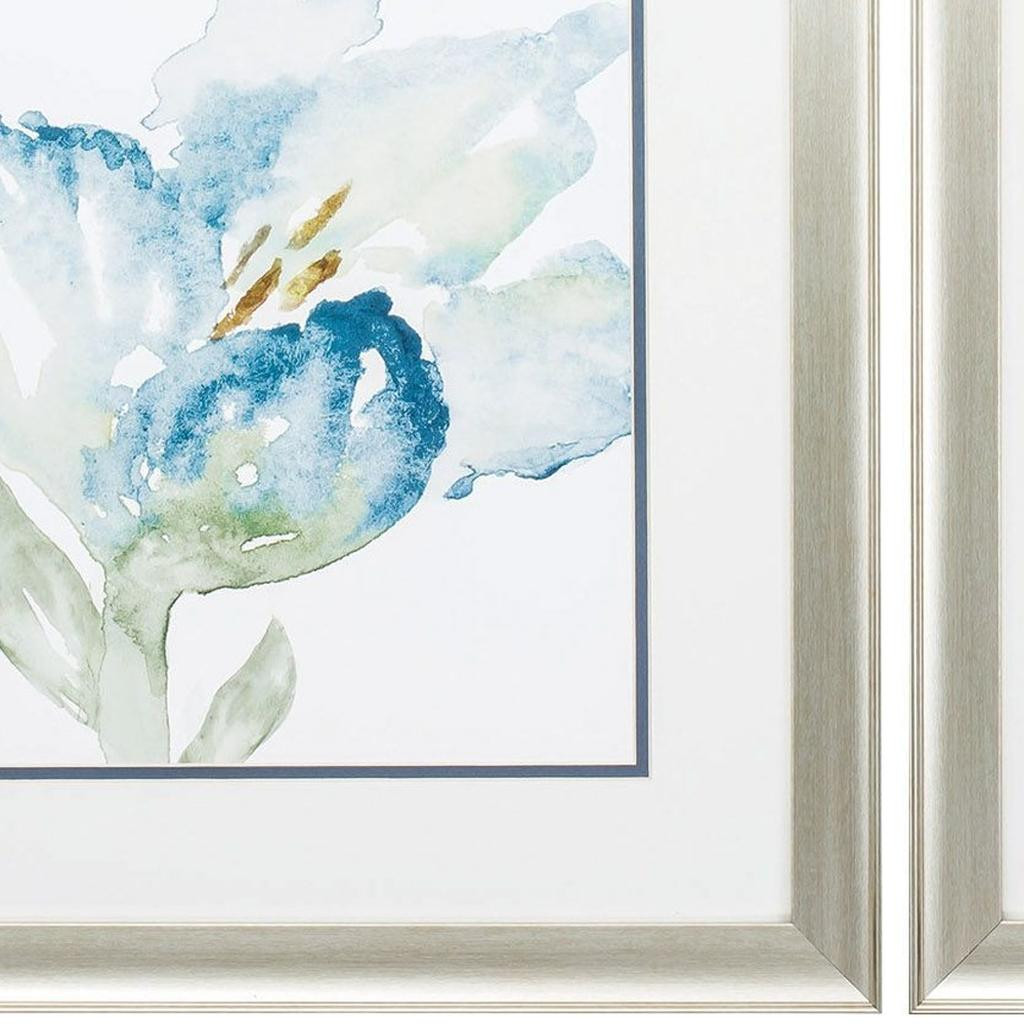 Add an air of fashion to your room and rejuvenate the space with this set of two baby blue tulips silver framed wall art. Reproduced for you on paper, this hanging decorative accent will be a trendy and fashionable way to dress your walls. Hang on your wall to add some up to date fashion and decoration. Instantly liven up your space with this art that brings color and dimension to your walls. 22.00-inch h x 19.00-inch w x 1.00-inch d.