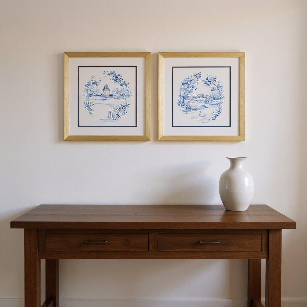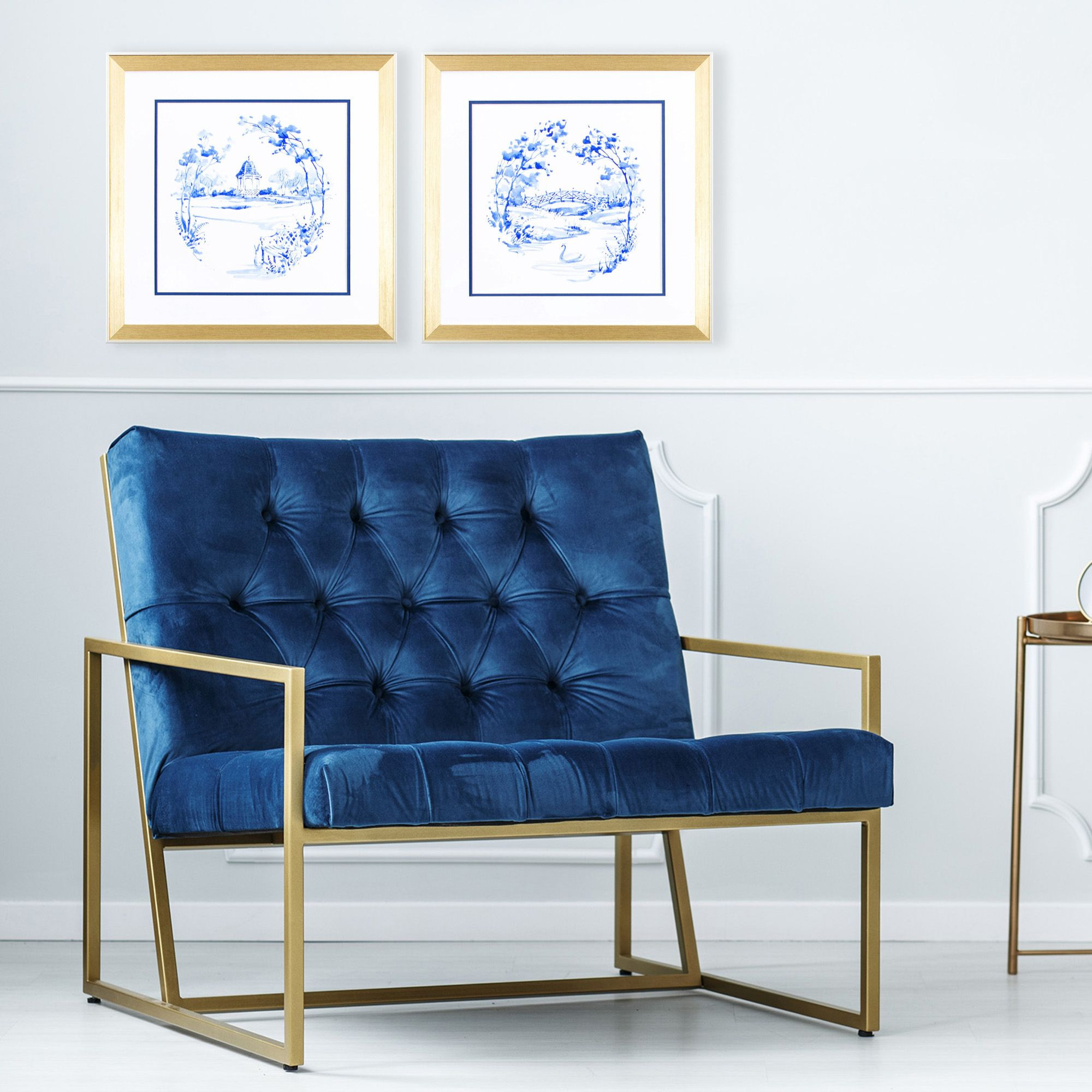 Add an air of fashion to your room and rejuvenate the space with this set of two blue garden impress b gold framed wall art. Reproduced for you on paper, this hanging decorative accent will be a trendy and fashionable way to dress your walls. Hang on your wall to add some up to date fashion and decoration. Utilize this opportunity to create a focal point in the room with this fabulous wall decor option. 18.00-inch h x 18.00-inch w x 2.00-inch d.