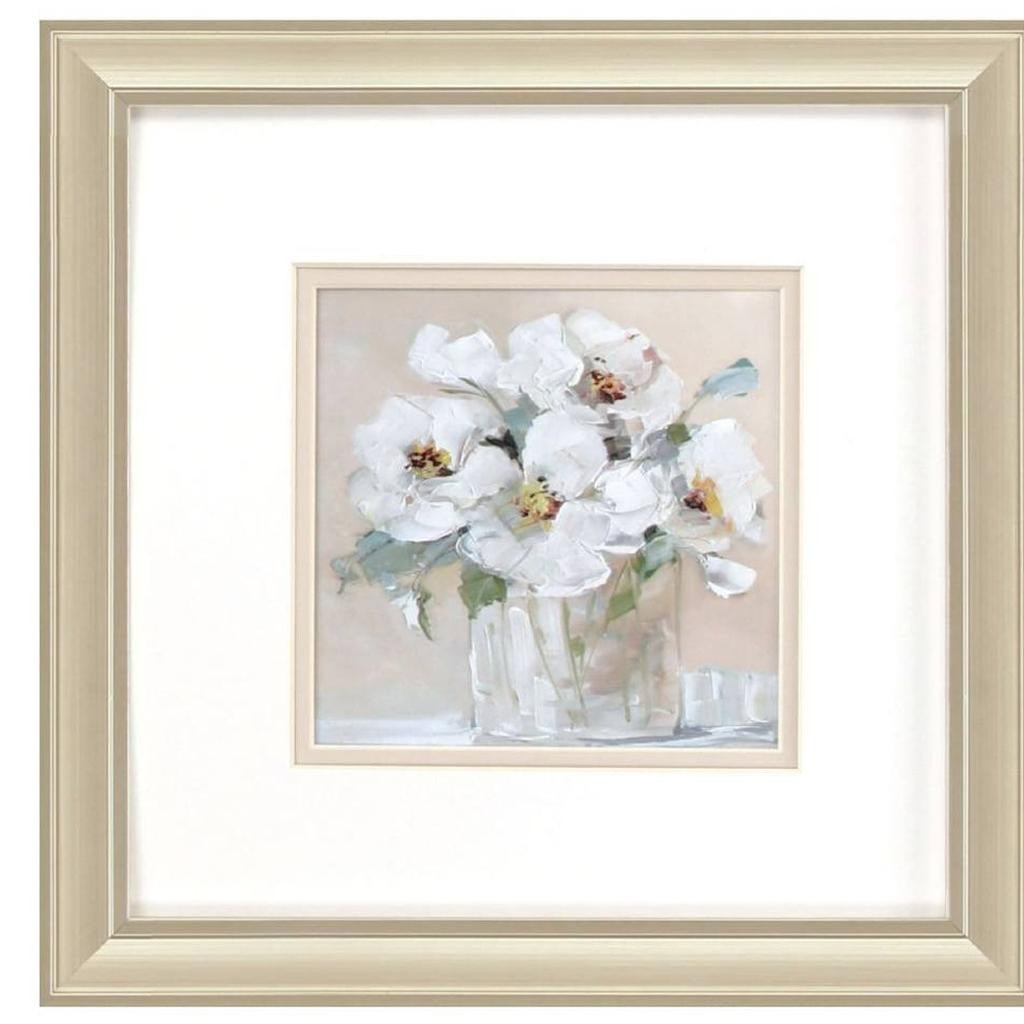 This set of two soft whites gold framed wall art will add a beautiful decorative accent to your decor. Reproduced for you on paper, this hanging decorative accent will be a trendy and fashionable way to dress your walls. Adding this hanging wall art to your space to make your room feel more finished and attractive. Instantly liven up your space with this art that brings color and dimension to your walls. 12.00-inch h x 12.00-inch w x 1.00-inch d.