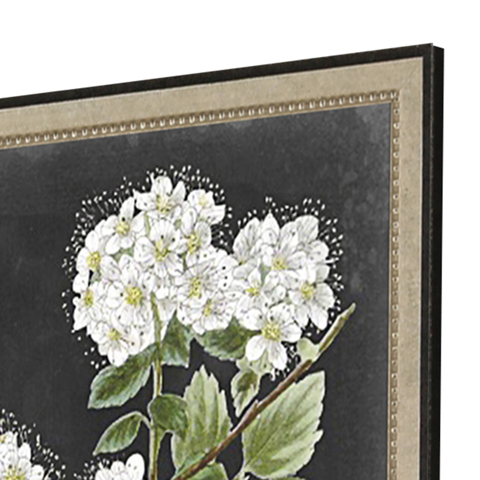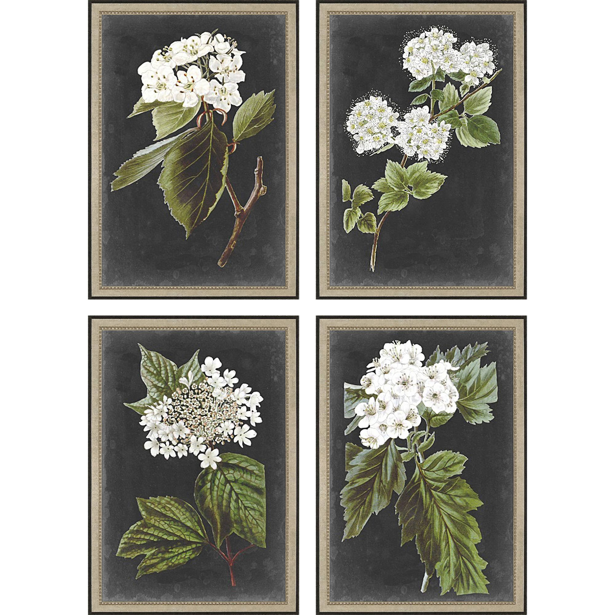 This set of four dramatic white flower silver framed wall art will add a beautiful decorative accent to your decor. Reproduced for you on paper, this hanging decorative accent will be a trendy and fashionable way to dress your walls. Hang on your wall to add some up to date fashion and decoration. Utilize this opportunity to create a focal point in the room with this fabulous wall decor option. 26.00-inch h x 18.00-inch w x 1.00-inch d.