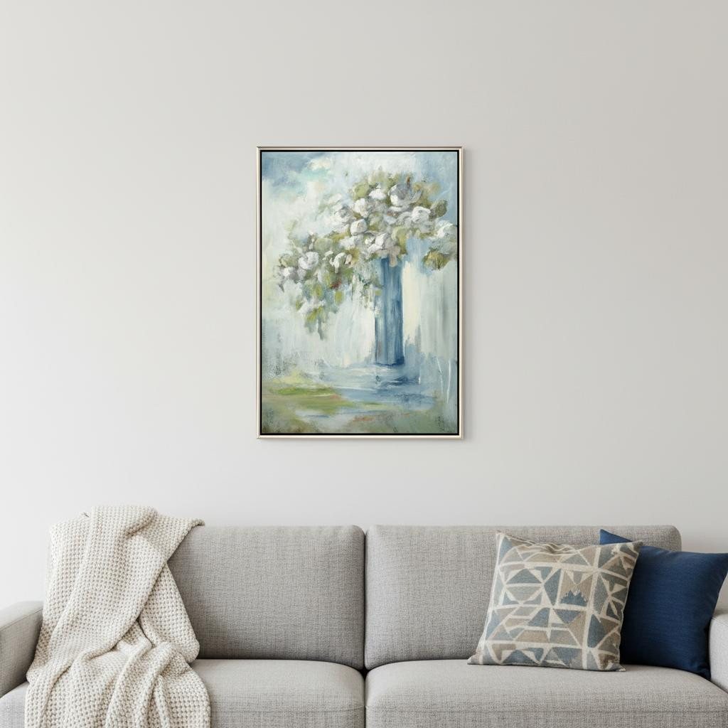 Add an air of fashion to your room and rejuvenate the space with this standing tall silver floater frame wall art. Reproduced for you on canvas, this hanging decorative accent will be a trendy and fashionable way to dress your walls. Hang on your wall to add some up to date fashion and decoration. Utilize this opportunity to create a focal point in the room with this fabulous wall decor option. 52.00-inch h x 36.00-inch w x 3.00-inch d.