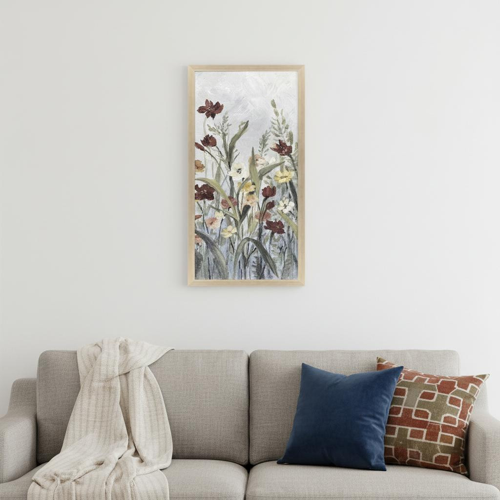 Add an air of fashion to your room and rejuvenate the space with this flourish wild flower i silver framed wall art. Reproduced for you on paper, this hanging decorative accent will be a trendy and fashionable way to dress your walls. Hang on your wall to add some up to date fashion and decoration. Instantly liven up your space with this art that brings color and dimension to your walls. 51.00-inch h x 27.00-inch w x 2.00-inch d.