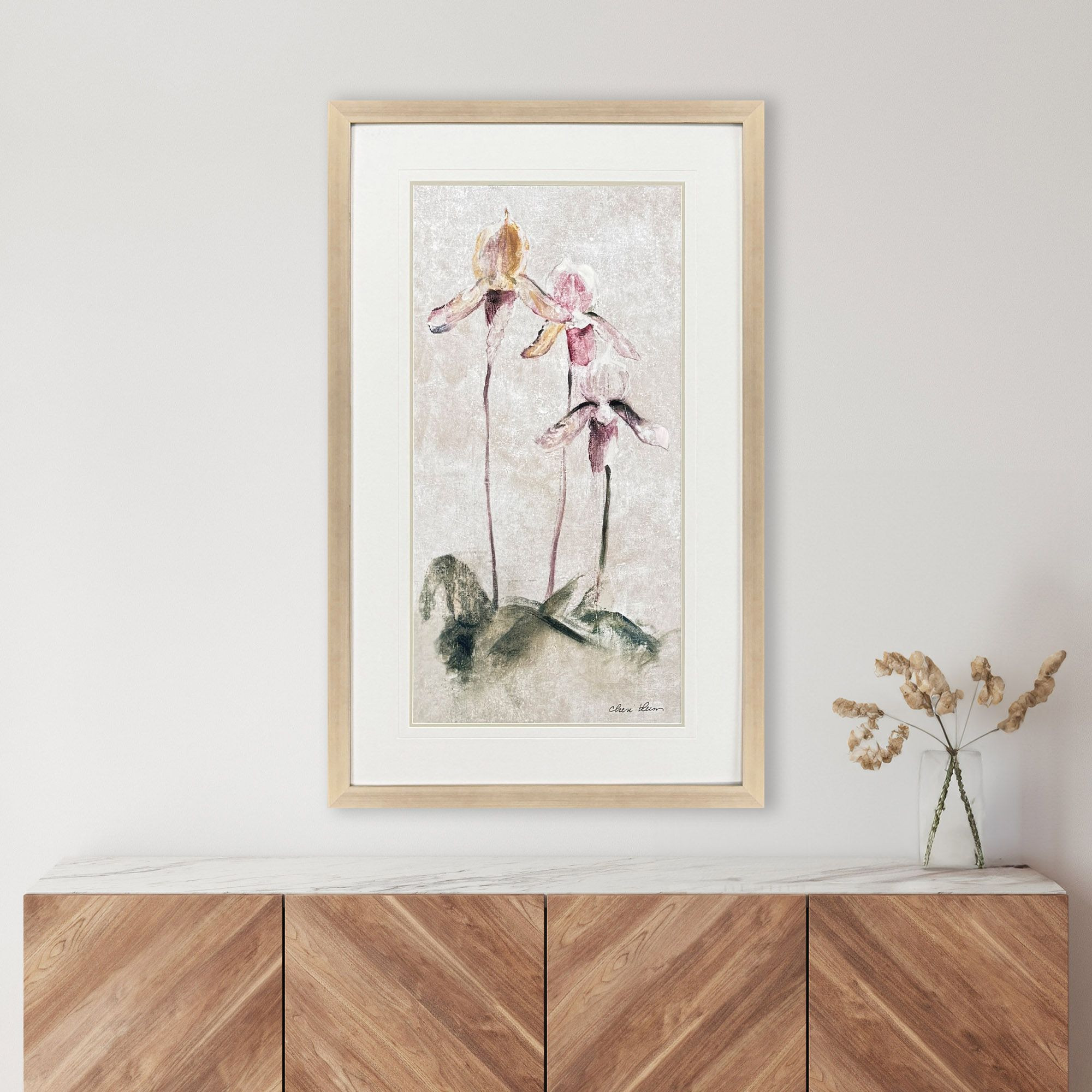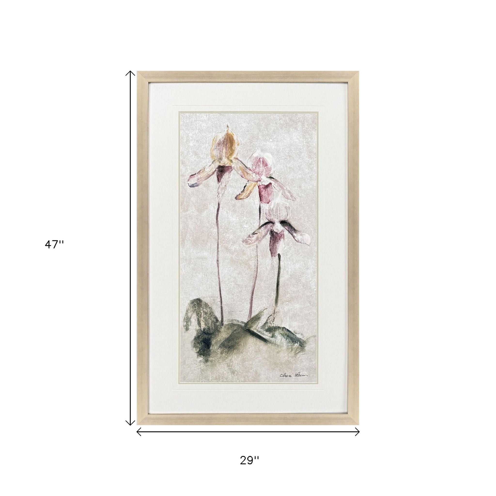 Bring some sizzle to your space with this eye-catching purple dancing orchid i silver framed wall art. Reproduced for you on paper, this hanging decorative accent will be a trendy and fashionable way to dress your walls. Adding this hanging wall art to your space to make your room feel more finished and attractive. Utilize this opportunity to create a focal point in the room with this fabulous wall decor option. 47.00-inch h x 29.00-inch w x 2.00-inch d.