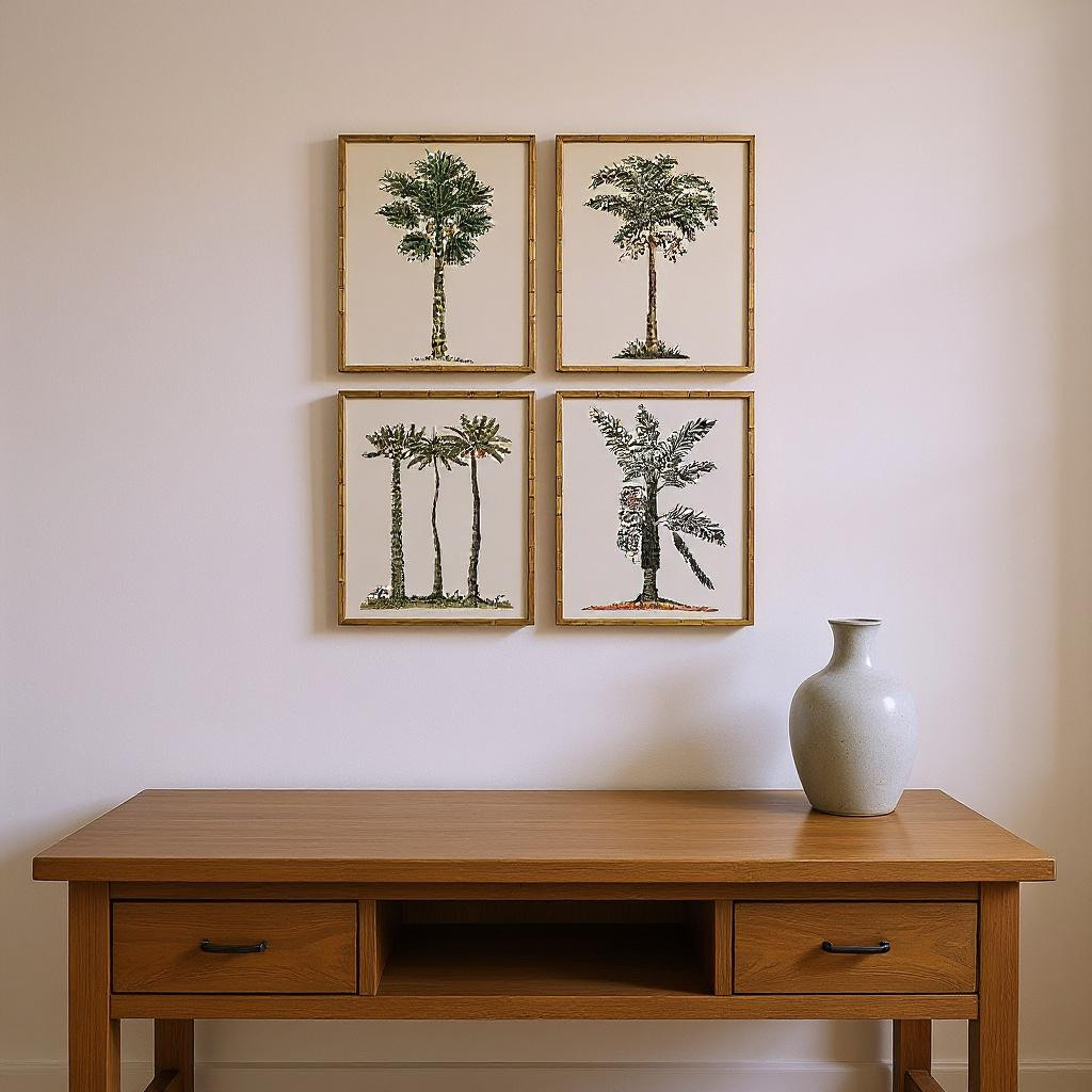 The set of four contemporary palm ii gold framed wall art is the perfect decorative accessory for your home. Reproduced for you on paper, this hanging decorative accent will be a trendy and fashionable way to dress your walls. Adding this hanging wall art to your space to make your room feel more finished and attractive. Utilize this opportunity to create a focal point in the room with this fabulous wall decor option. 25.00-inch h x 19.00-inch w x 2.00-inch d.