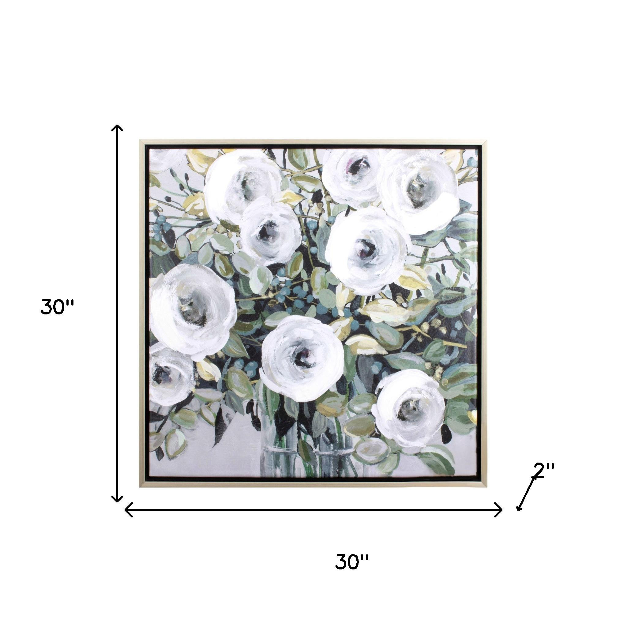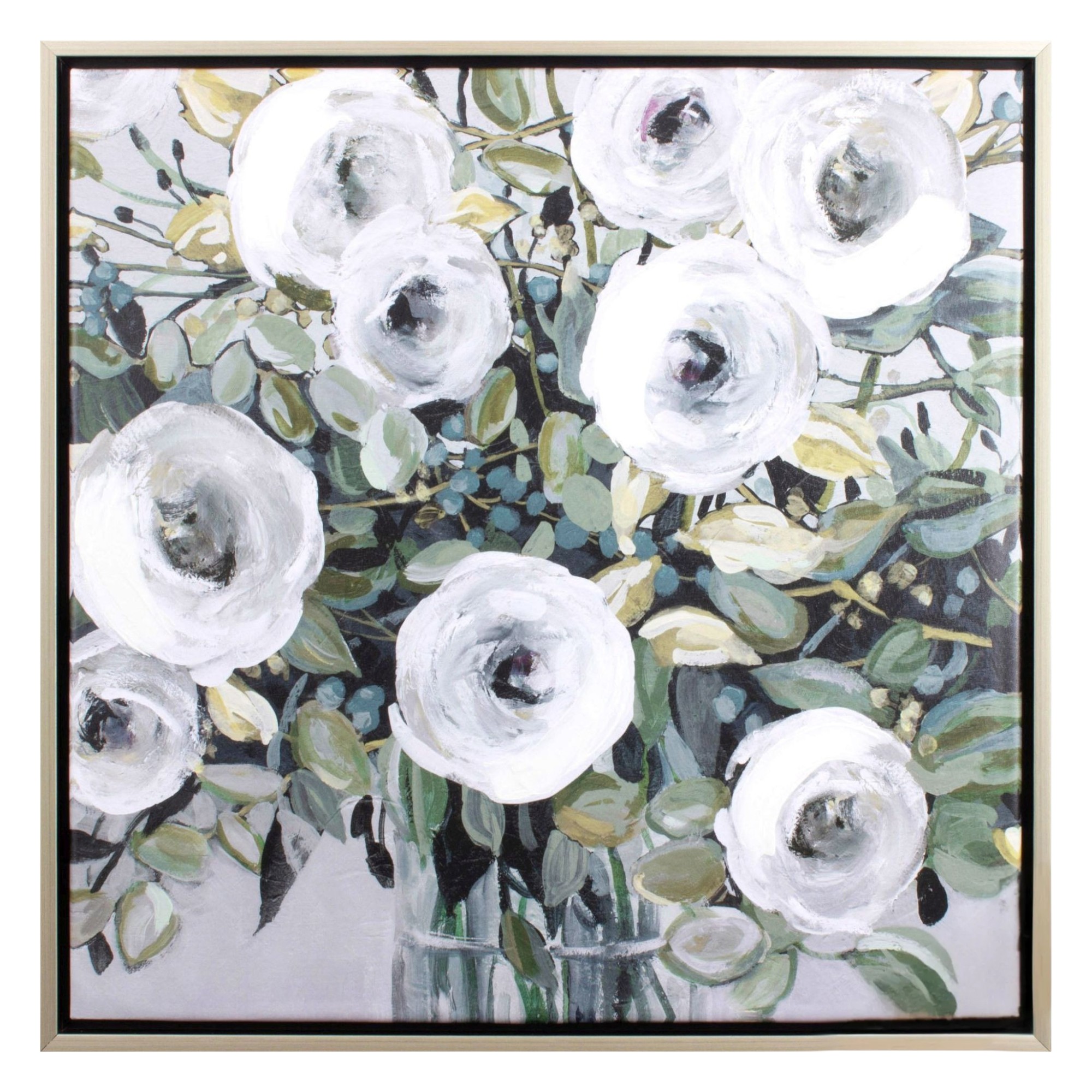 Bring some sizzle to your space with this eye-catching white rose parade silver floater frame wall art. Reproduced for you on canvas, this hanging decorative accent will be a trendy and fashionable way to dress your walls. Adding this hanging wall art to your space to make your room feel more finished and attractive. Utilize this opportunity to create a focal point in the room with this fabulous wall decor option. 30.00-inch h x 30.00-inch w x 2.00-inch d.