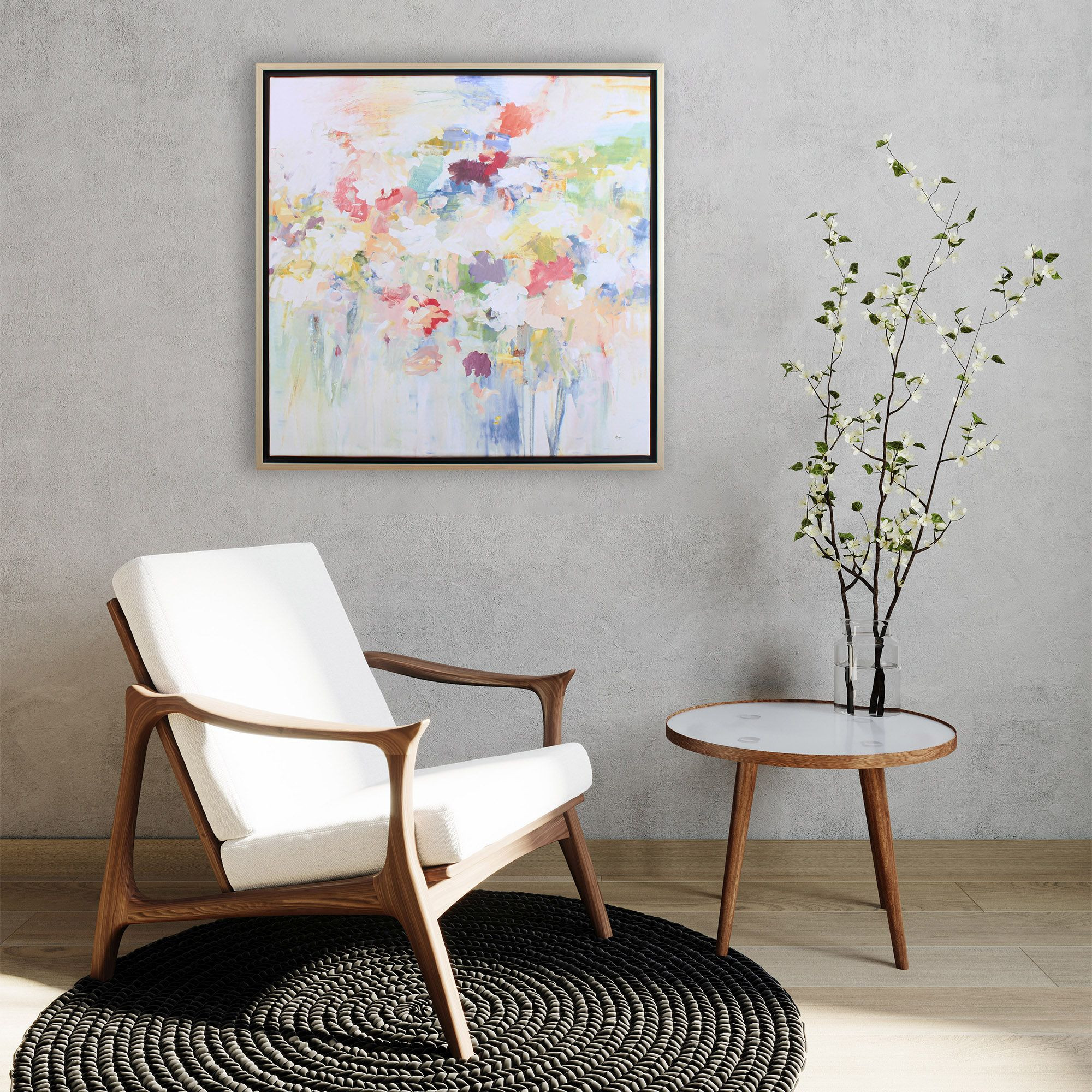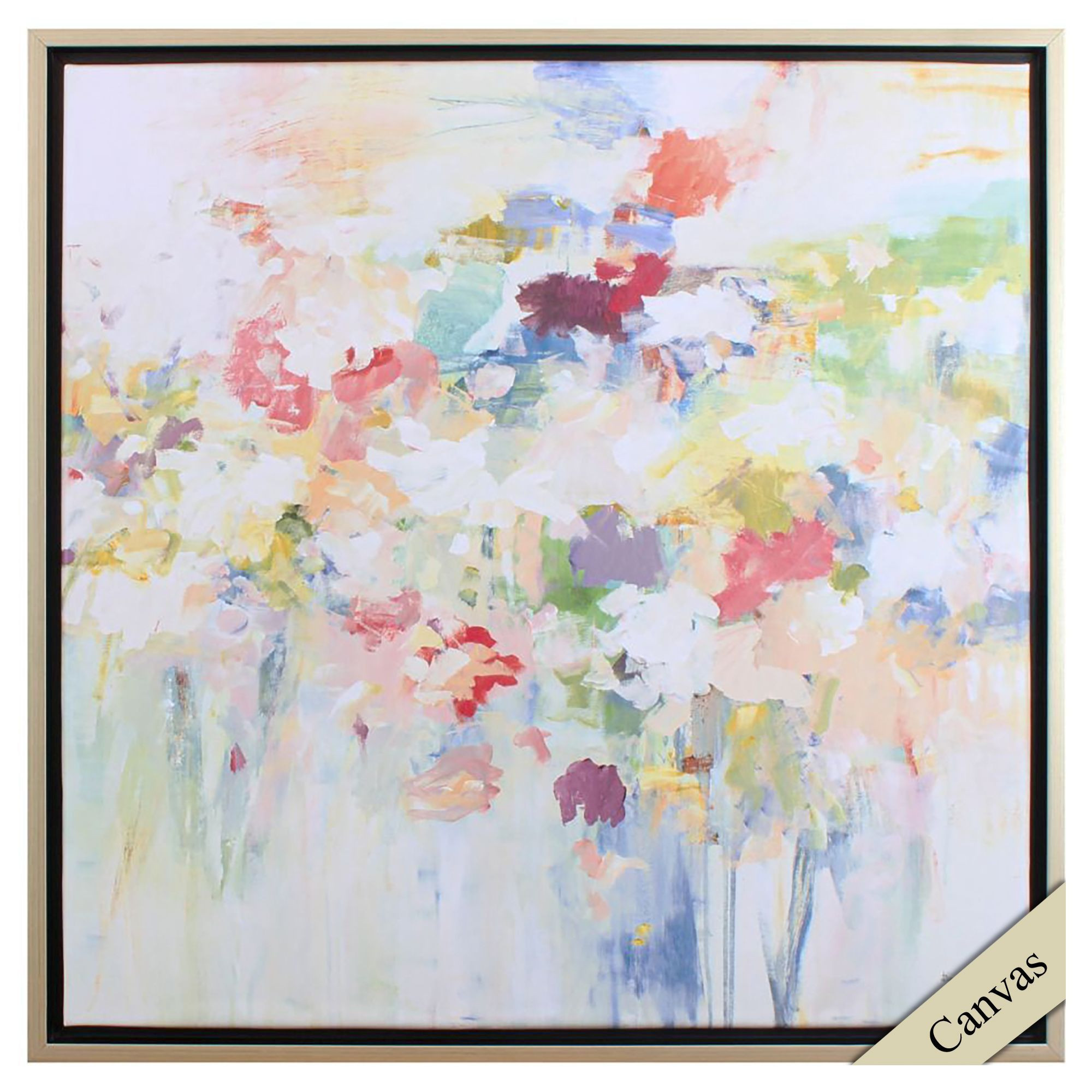 Unique and decorative, this floral burst abstract silver floater frame wall art will leave a lasting impression. Reproduced for you on canvas, this hanging decorative accent will be a trendy and fashionable way to dress your walls. Adding this hanging wall art to your space to make your room feel more finished and attractive. Instantly liven up your space with this art that brings color and dimension to your walls. 30.00-inch h x 30.00-inch w x 2.00-inch d.