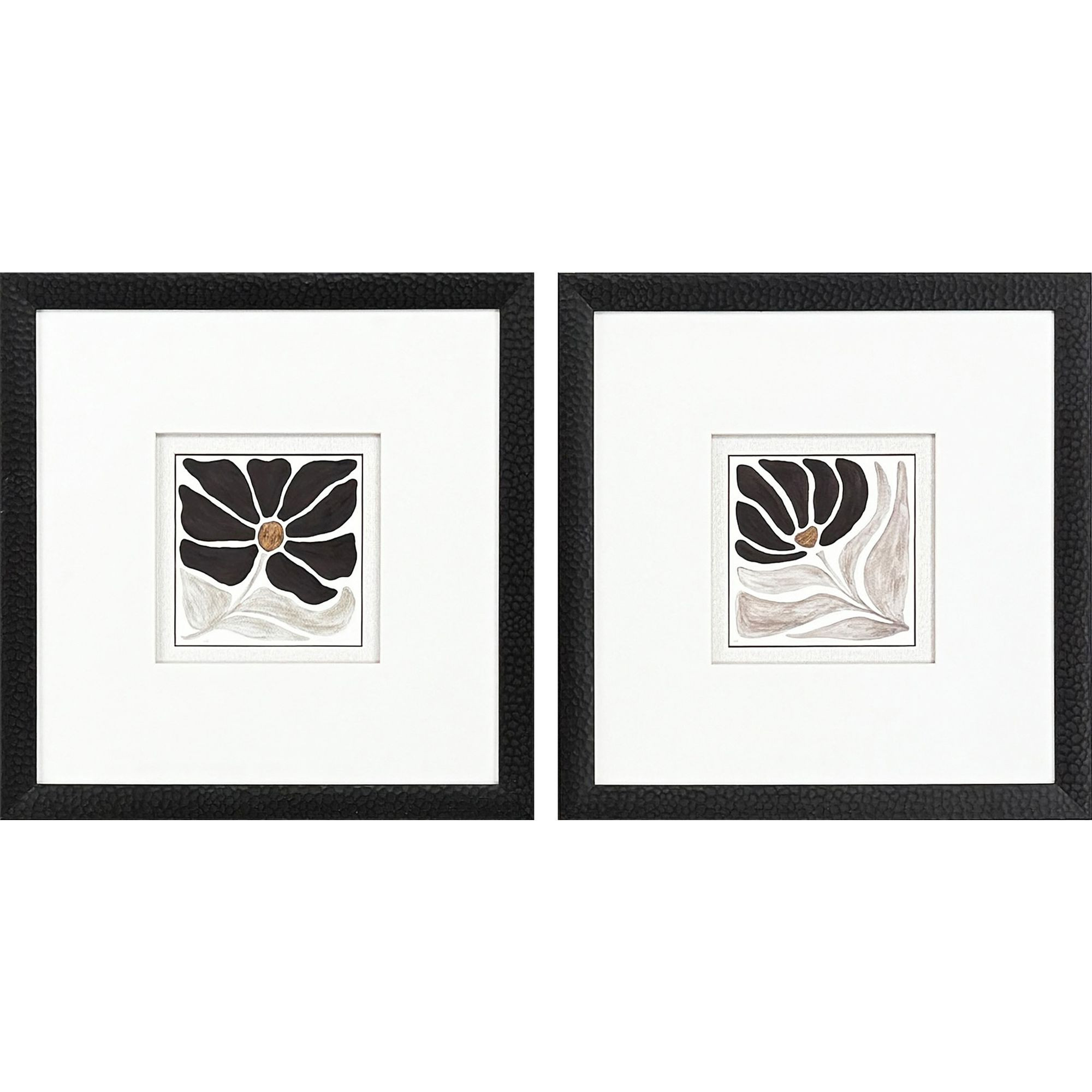 Bring some sizzle to your space with this eye-catching set of two modern petals black framed wall art. Reproduced for you on paper, this hanging decorative accent will be a trendy and fashionable way to dress your walls. Adding this hanging wall art to your space to make your room feel more finished and attractive. Instantly liven up your space with this art that brings color and dimension to your walls. 23.00-inch h x 23.00-inch w x 2.00-inch d.