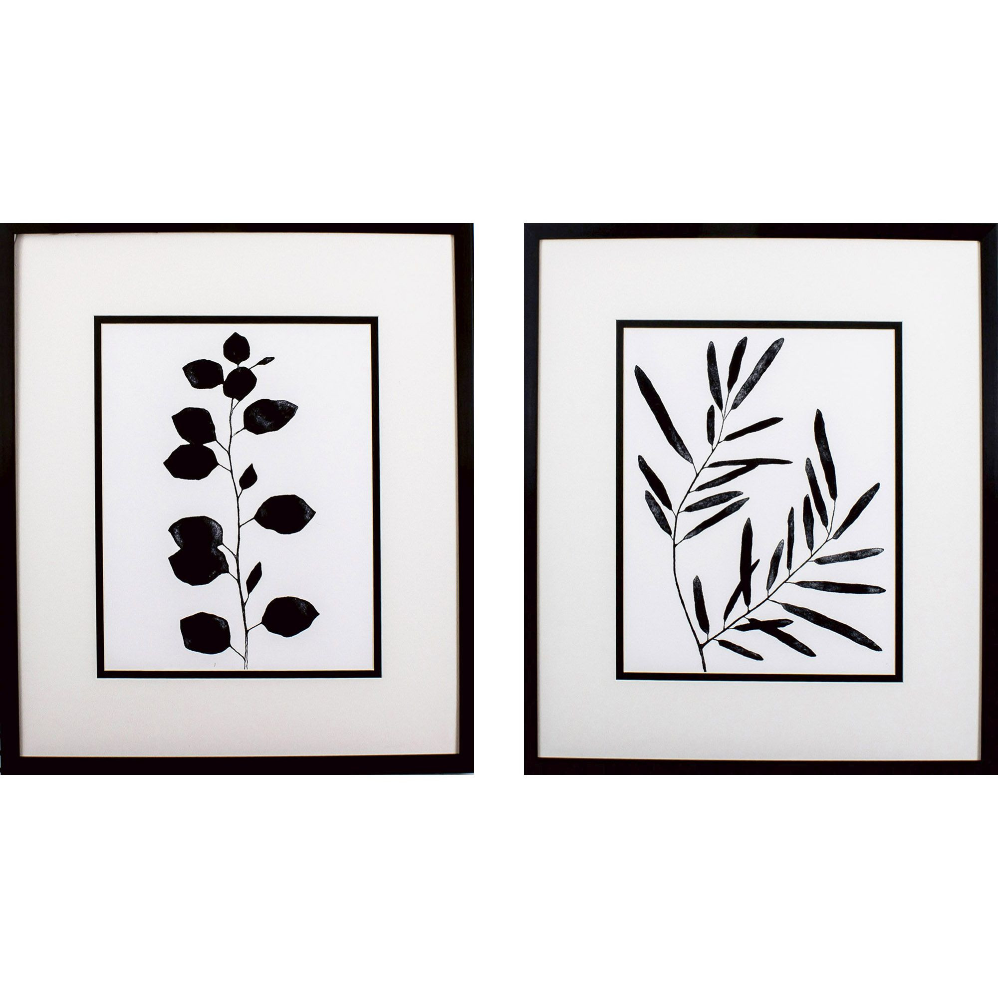 Bring some sizzle to your space with this eye-catching set of two leaf imprint black framed wall art. Reproduced for you on paper, this hanging decorative accent will be a trendy and fashionable way to dress your walls. Adding this hanging wall art to your space to make your room feel more finished and attractive. Utilize this opportunity to create a focal point in the room with this fabulous wall decor option. 32.00-inch h x 28.00-inch w x 2.00-inch d.