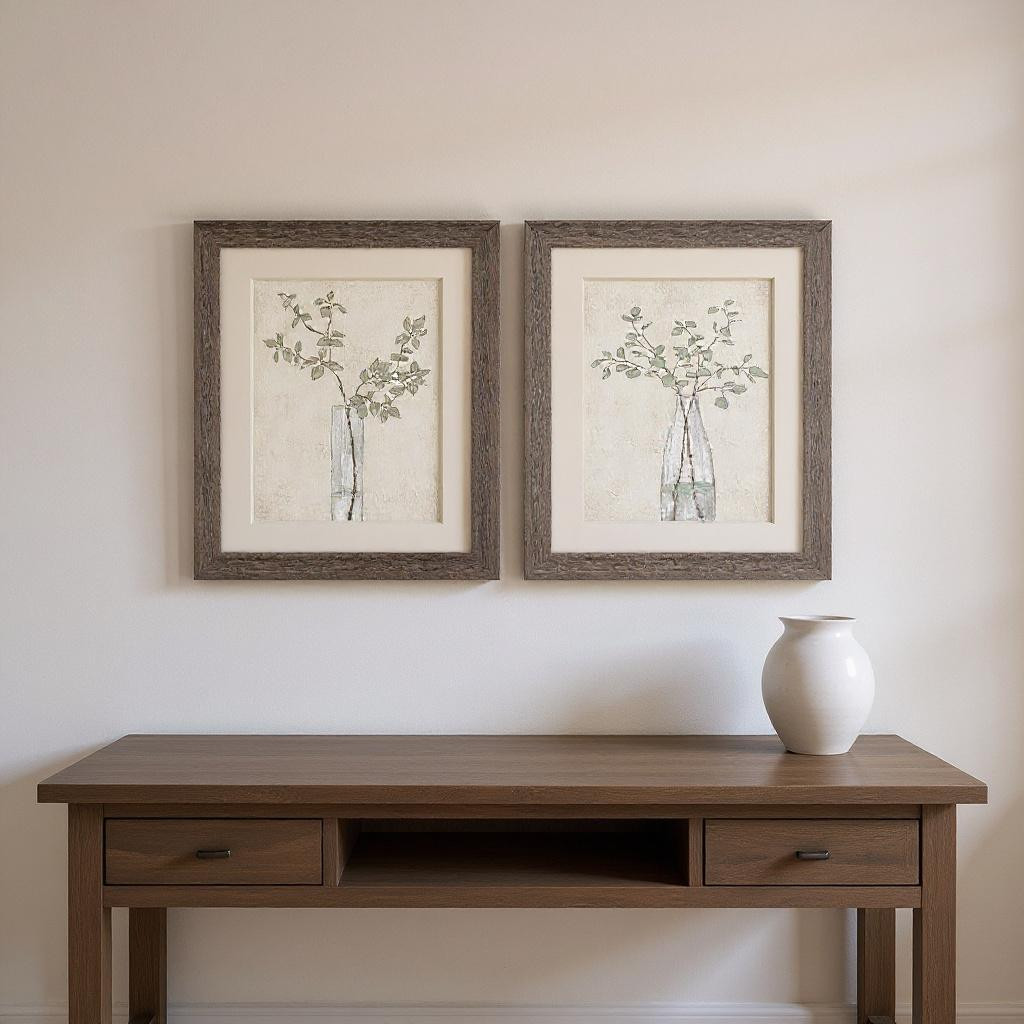 The set of two serenity leaves brown framed wall art is the perfect decorative accessory for your home. Reproduced for you on paper, this hanging decorative accent will be a trendy and fashionable way to dress your walls. Adding this hanging wall art to your space to make your room feel more finished and attractive. Utilize this opportunity to create a focal point in the room with this fabulous wall decor option. 23.00-inch h x 19.00-inch w x 1.00-inch d.