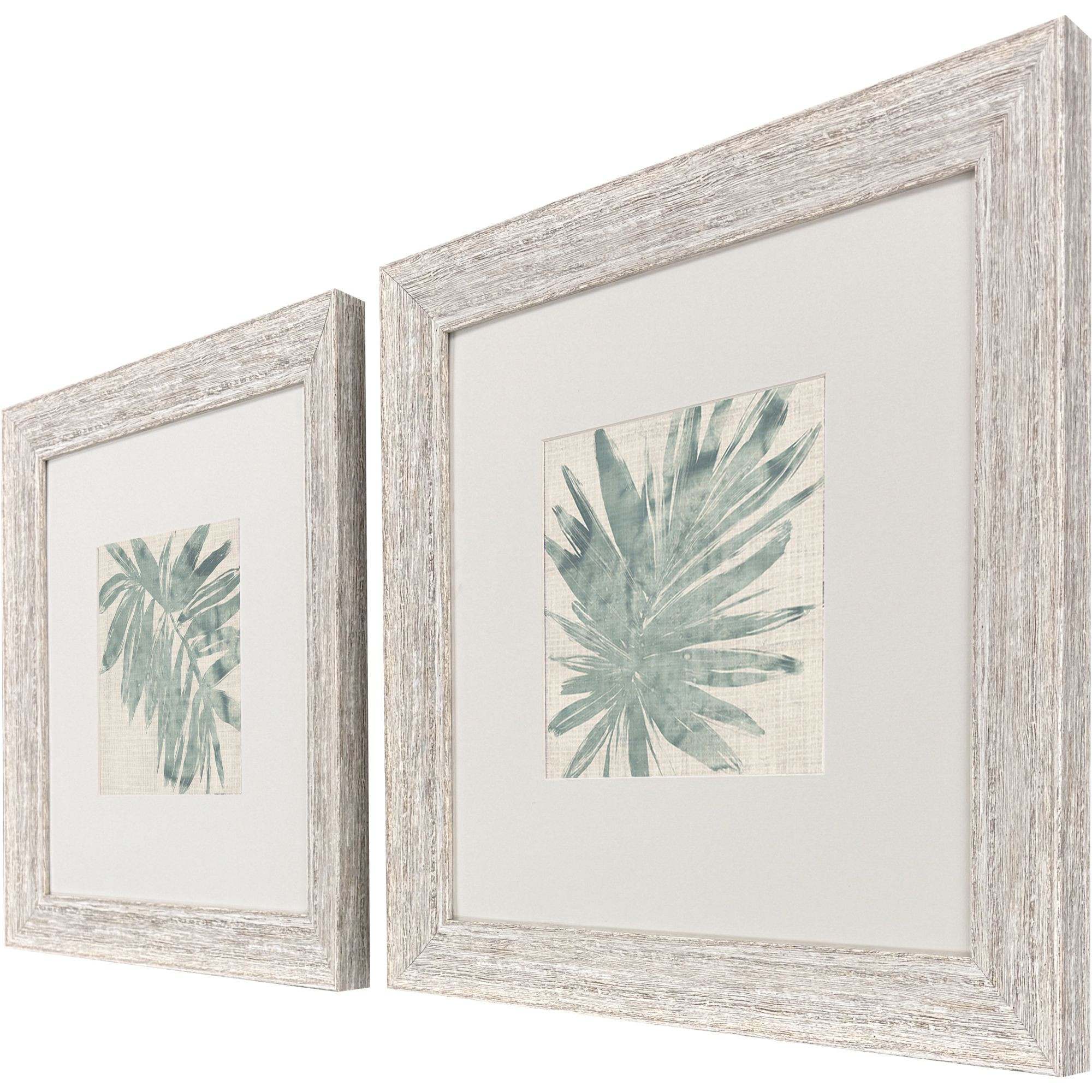 This set of two burlap ocean palm i distressed white framed wall art will add a beautiful decorative accent to your decor. Reproduced for you on paper, this hanging decorative accent will be a trendy and fashionable way to dress your walls. Hang on your wall to add some up to date fashion and decoration. Utilize this opportunity to create a focal point in the room with this fabulous wall decor option. 22.00-inch h x 22.00-inch w x 2.00-inch d.