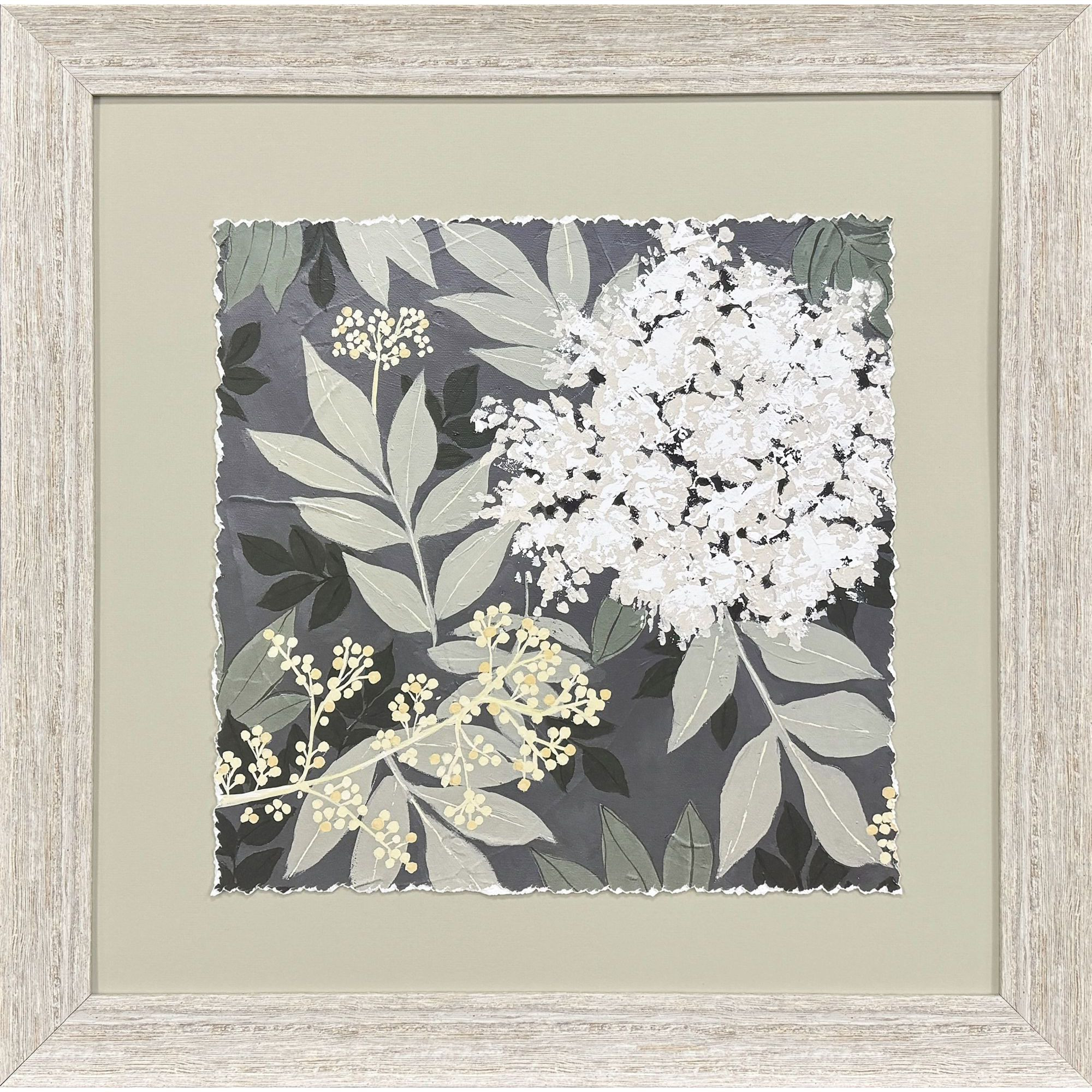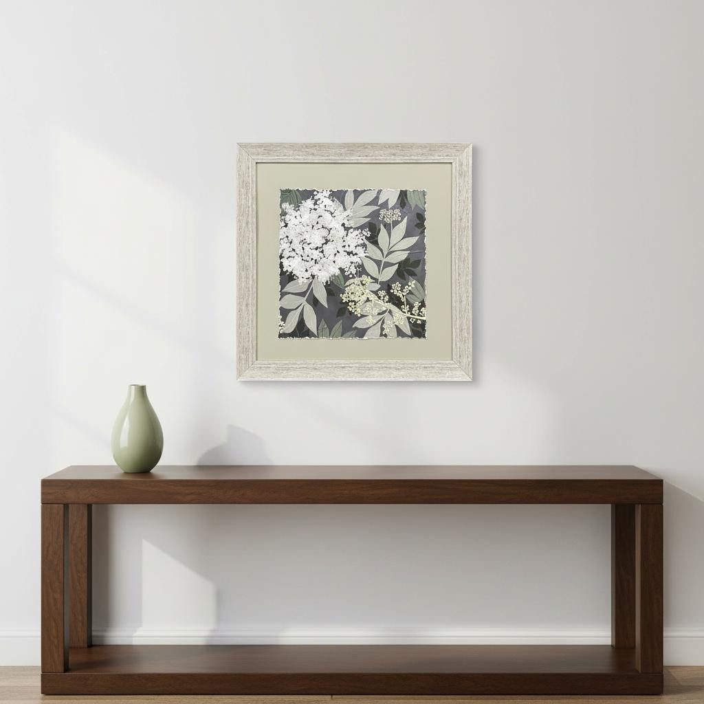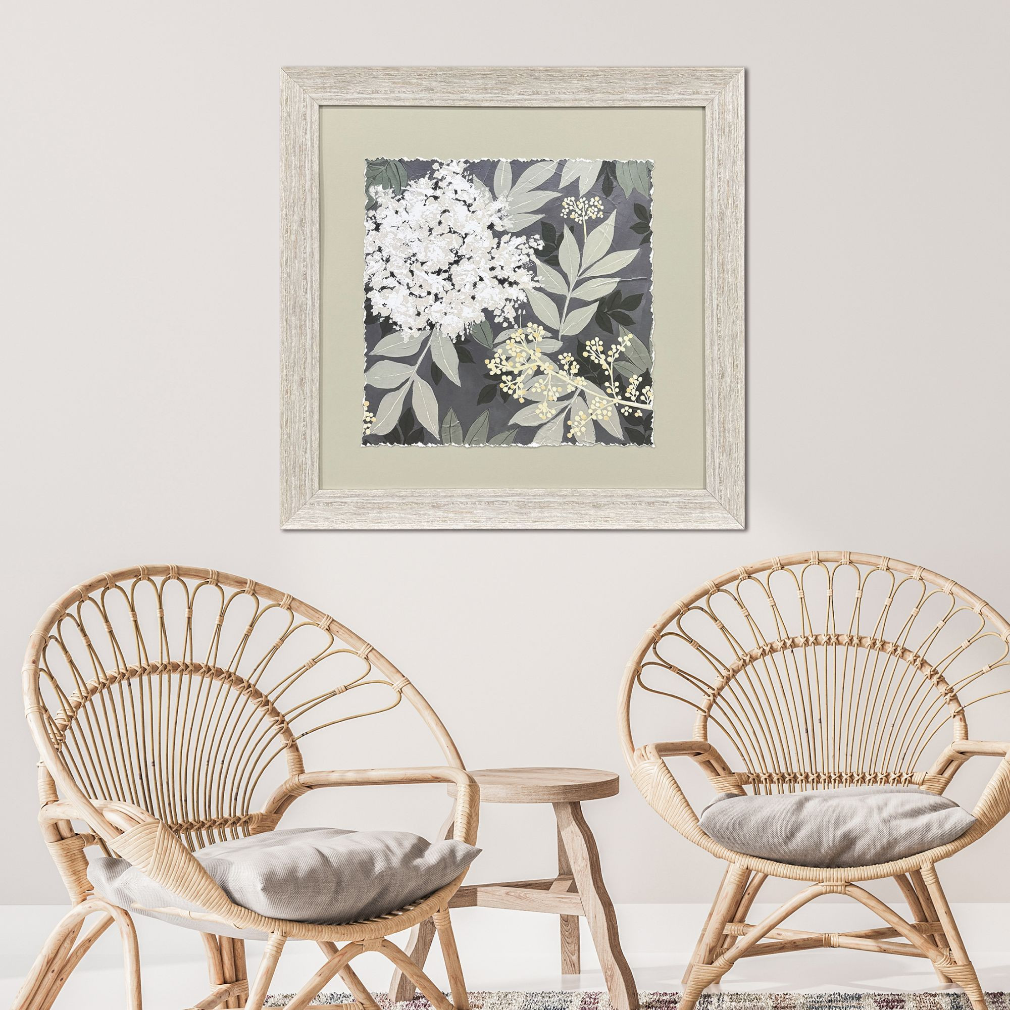 Bring some sizzle to your space with this eye-catching my garden ii distressed white framed wall art. Reproduced for you on paper, this hanging decorative accent will be a trendy and fashionable way to dress your walls. Hang on your wall to add some up to date fashion and decoration. Utilize this opportunity to create a focal point in the room with this fabulous wall decor option. 30.00-inch h x 30.00-inch w x 2.00-inch d.