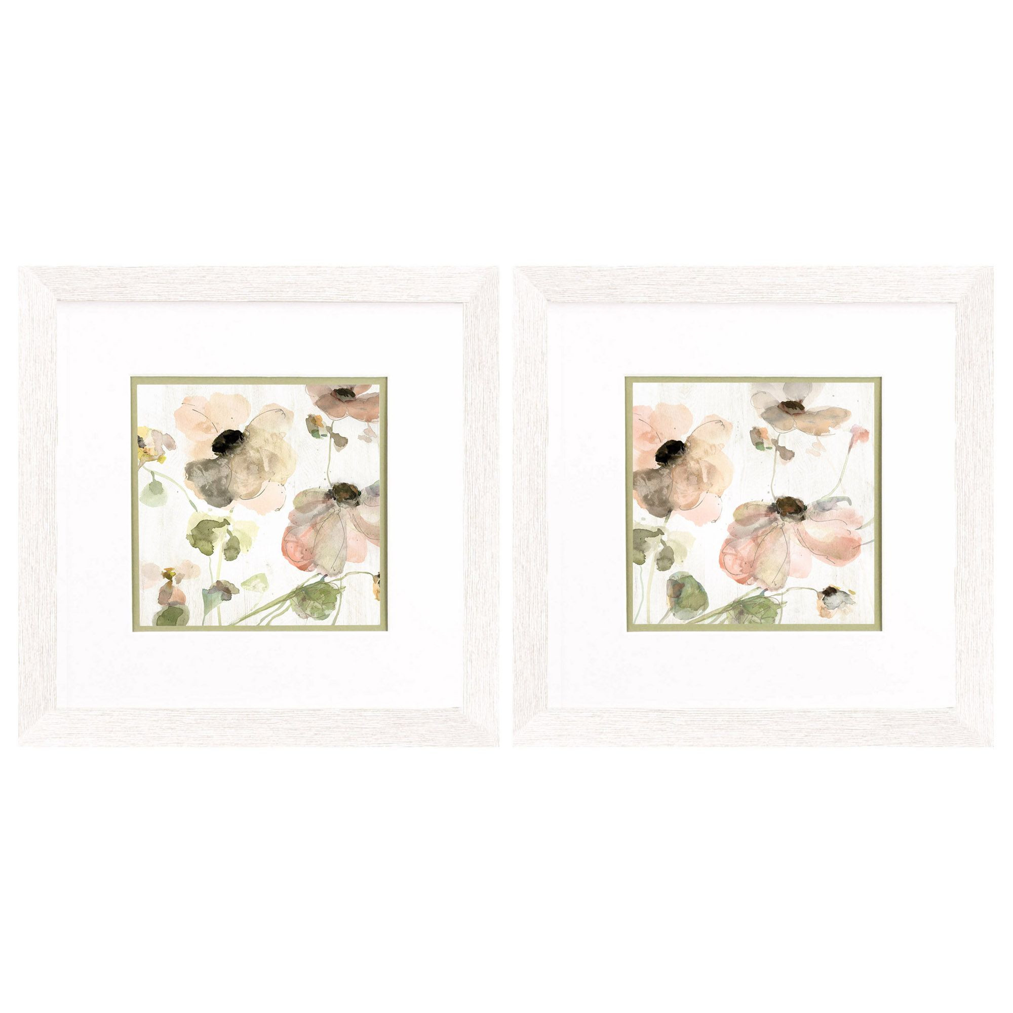 Add an air of fashion to your room and rejuvenate the space with this set of two soft spring pop distressed white framed wall art. Reproduced for you on paper, this hanging decorative accent will be a trendy and fashionable way to dress your walls. Adding this hanging wall art to your space to make your room feel more finished and attractive. Utilize this opportunity to create a focal point in the room with this fabulous wall decor option. 11.00-inch h x 11.00-inch w x 1.00-inch d.
