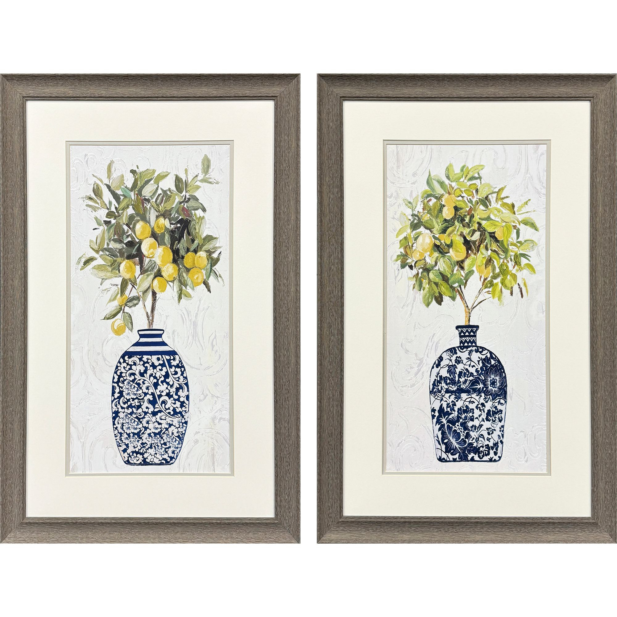 Add an air of fashion to your room and rejuvenate the space with this set of two lemon tree pot brown framed wall art. Reproduced for you on paper, this hanging decorative accent will be a trendy and fashionable way to dress your walls. Hang on your wall to add some up to date fashion and decoration. Utilize this opportunity to create a focal point in the room with this fabulous wall decor option. 33.00-inch h x 21.00-inch w x 1.00-inch d.