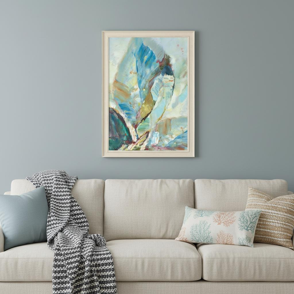 Unique and decorative, this aqua leaf i distressed white framed wall art will leave a lasting impression. Reproduced for you on paper, this hanging decorative accent will be a trendy and fashionable way to dress your walls. Hang on your wall to add some up to date fashion and decoration. Utilize this opportunity to create a focal point in the room with this fabulous wall decor option. 40.00-inch h x 28.00-inch w x 2.00-inch d.