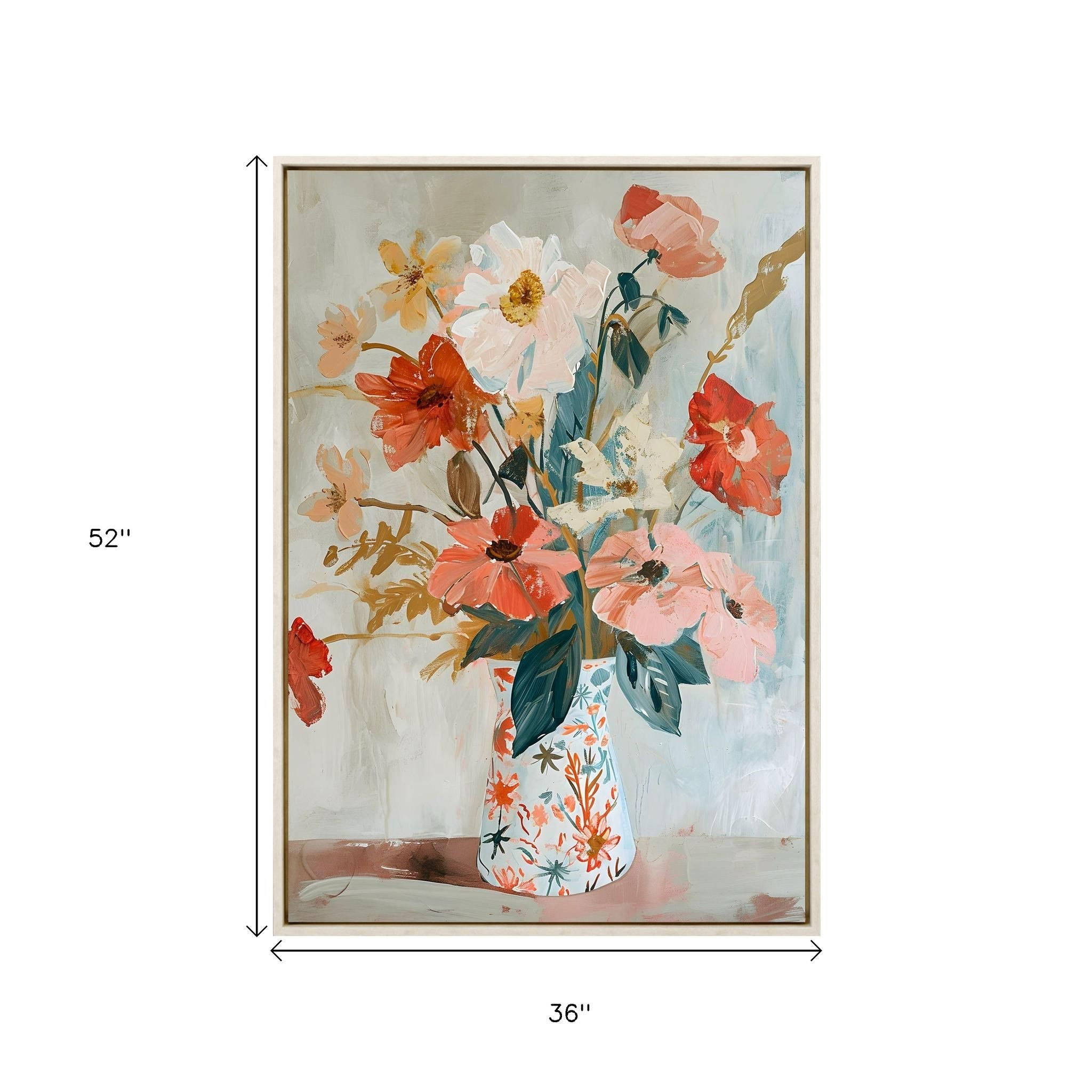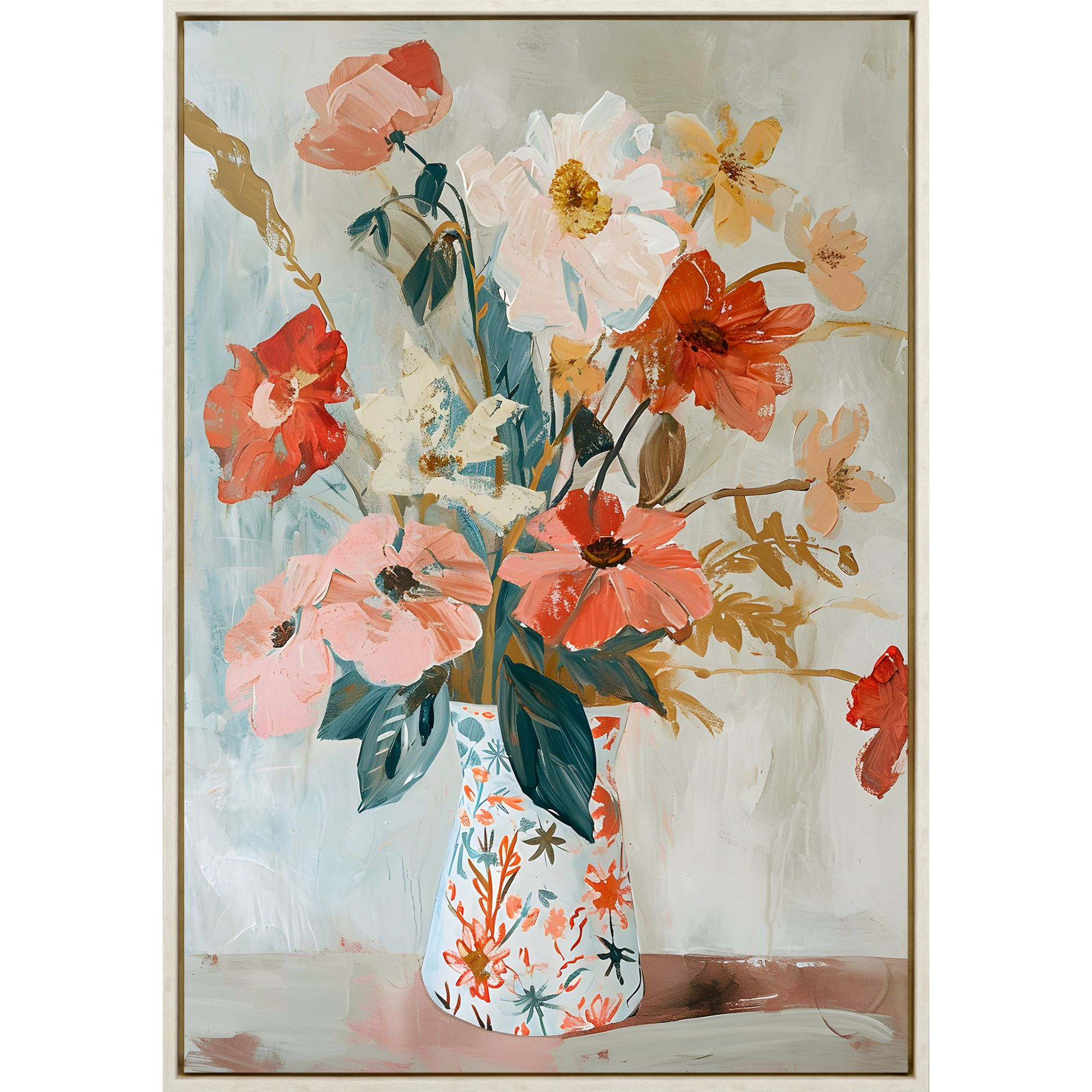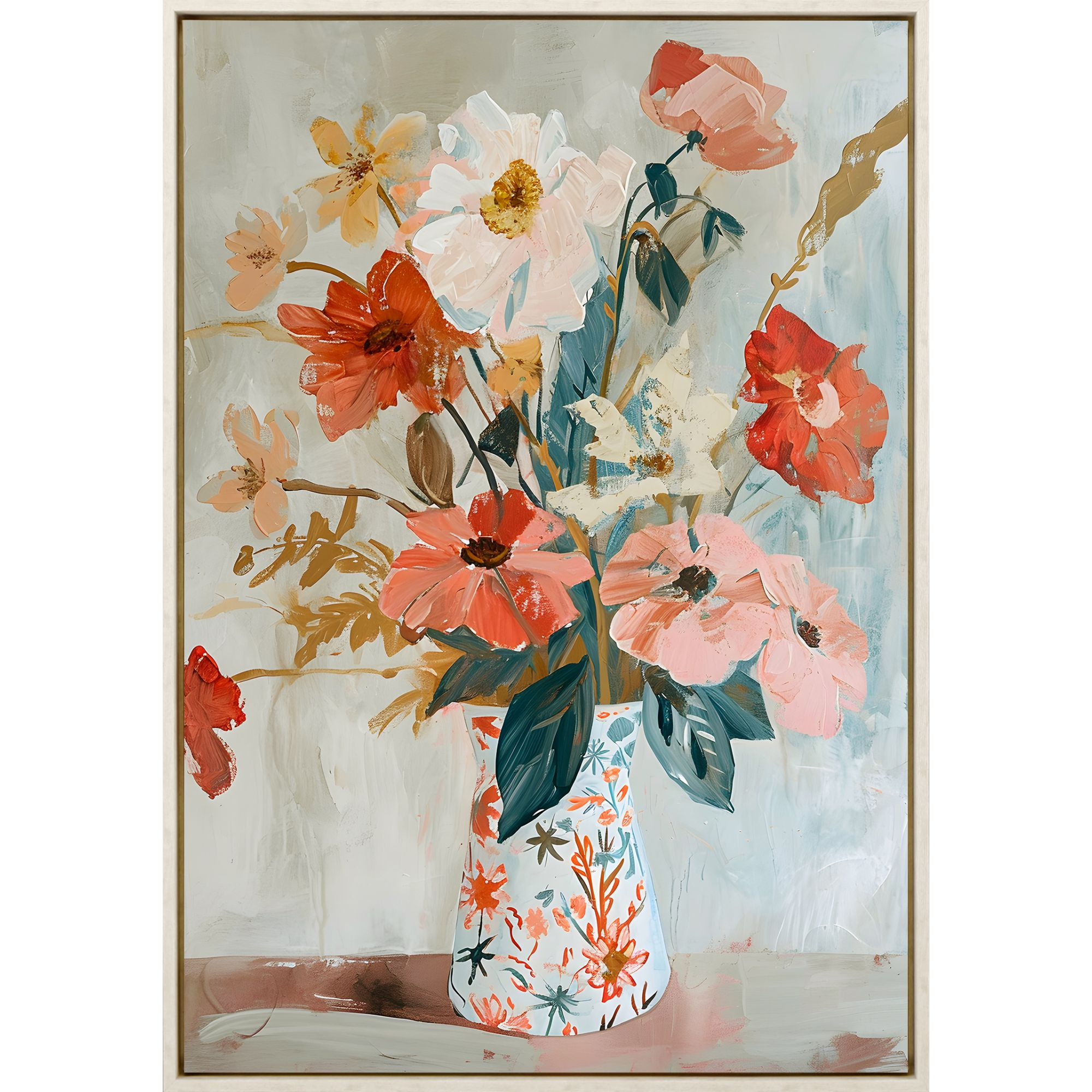 Add an air of fashion to your room and rejuvenate the space with this spring soiree 1 distressed white floater frame wall art. Reproduced for you on canvas, this hanging decorative accent will be a trendy and fashionable way to dress your walls. Adding this hanging wall art to your space to make your room feel more finished and attractive. Instantly liven up your space with this art that brings color and dimension to your walls. 52.00-inch h x 36.00-inch w x 3.00-inch d.