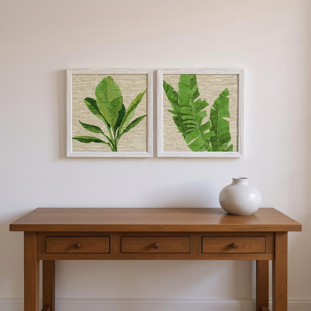 This set of two palm isle i distressed white framed wall art will add a beautiful decorative accent to your decor. Reproduced for you on paper, this hanging decorative accent will be a trendy and fashionable way to dress your walls. Adding this hanging wall art to your space to make your room feel more finished and attractive. Utilize this opportunity to create a focal point in the room with this fabulous wall decor option. 26.00-inch h x 26.00-inch w x 1.00-inch d.