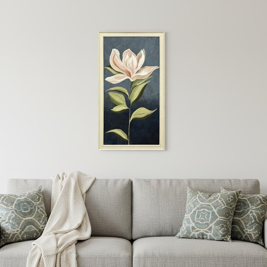 magnolia flora distressed white framed, pink magnolia flora distressed white, pink magnolia flora distressed, flora distressed white framed wall, distressed white framed wall art |