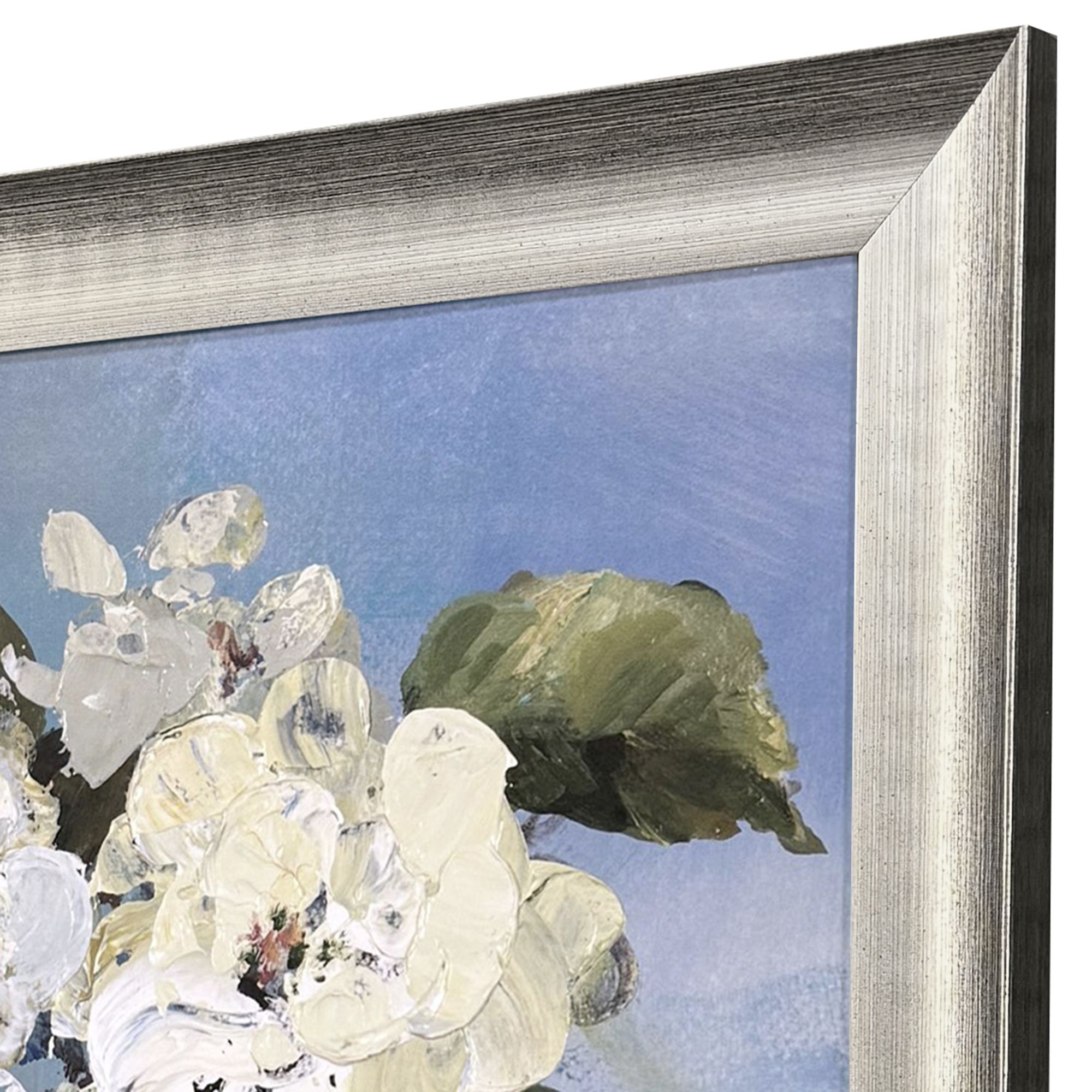 Unique and decorative, this alluring blooms silver framed wall art will leave a lasting impression. Reproduced for you on paper, this hanging decorative accent will be a trendy and fashionable way to dress your walls. Adding this hanging wall art to your space to make your room feel more finished and attractive. Utilize this opportunity to create a focal point in the room with this fabulous wall decor option. 30.00-inch h x 30.00-inch w x 2.00-inch d.