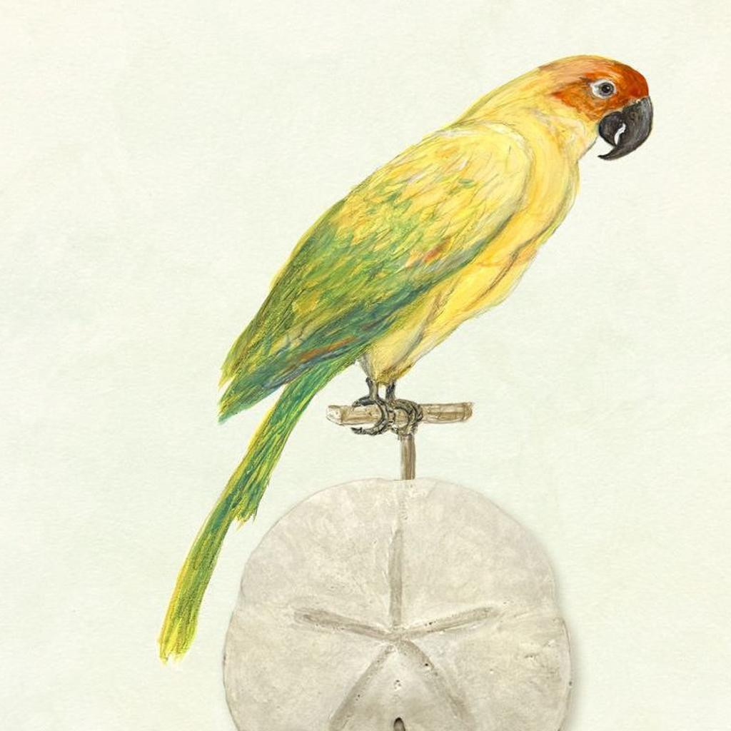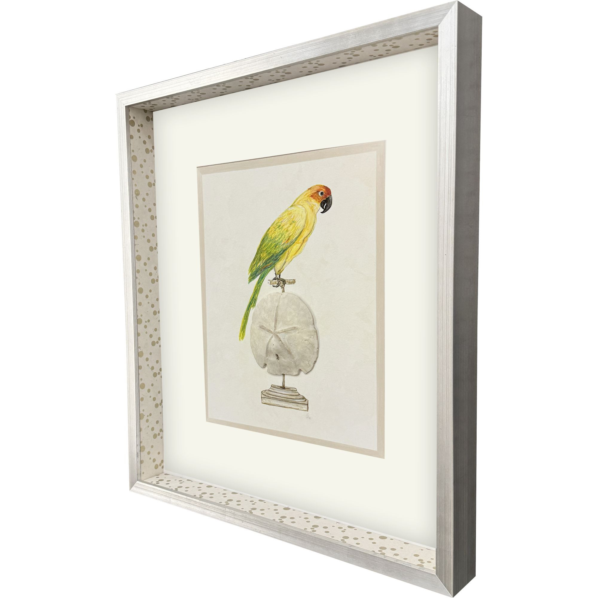 Birds,Sand Dollars,Shells,Intaglios,Parrots,Pedestals,Oceans,Beaches,Exclusive,Mixed Media,Hand Finished,Glass Front,Treasure Parrot III |