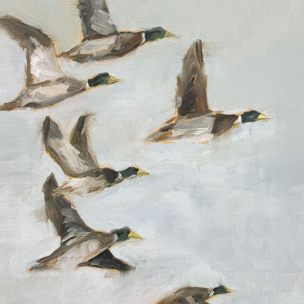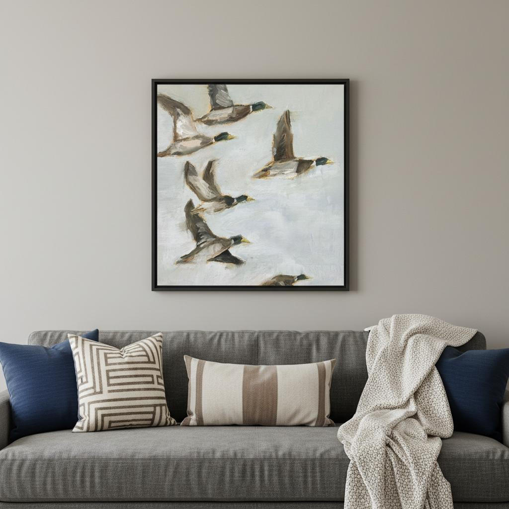 Birds,Ducks,Giclee on Canvas,Wood Stretcher Bar,Frame Without Glass,Hand Assembled,Mallard Migration I |