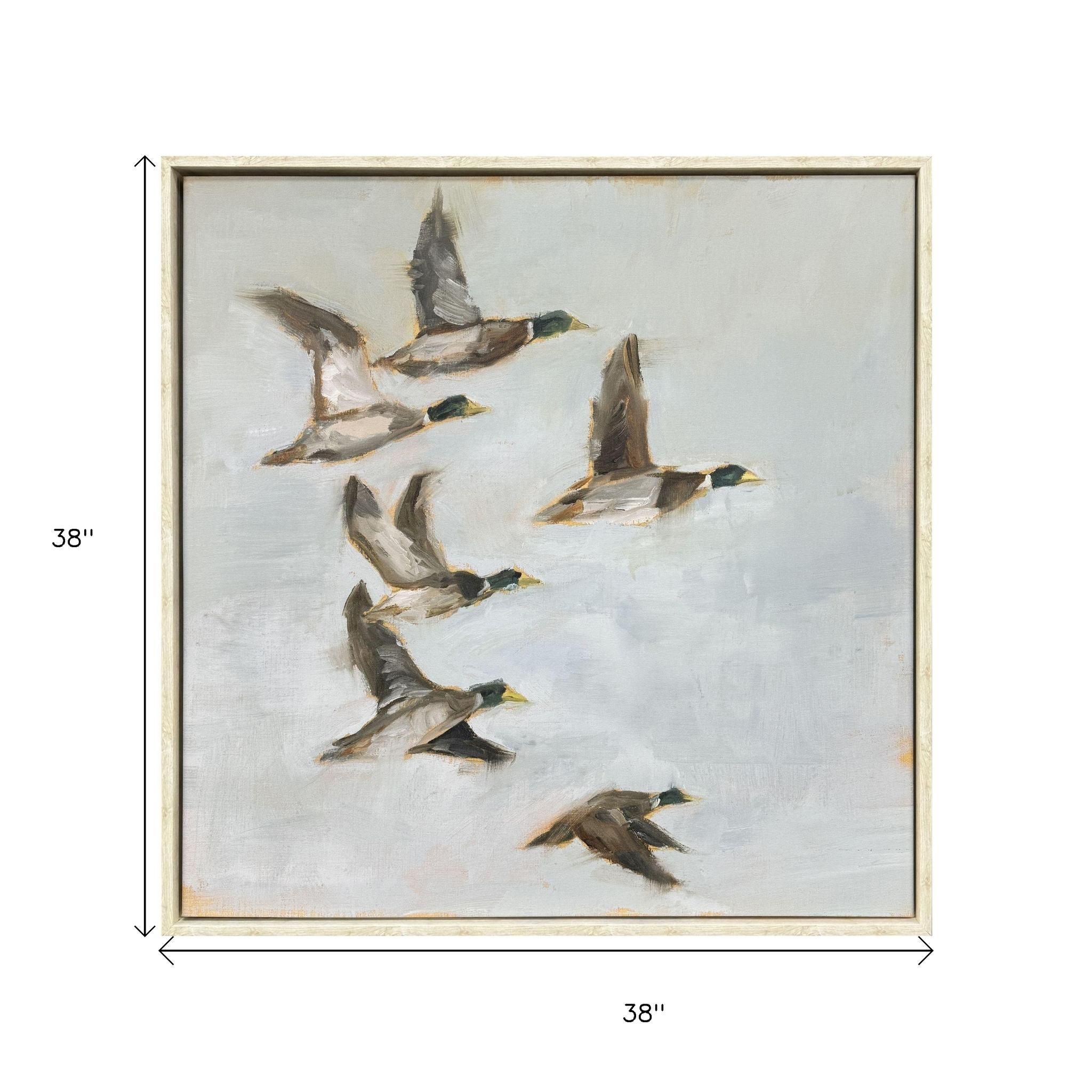 The mallard migration i distressed white floater frame wall art is the perfect decorative accessory for your home. This bird inspired art will be a great addition to your space. Reproduced for you on canvas, this hanging decorative accent will be a trendy and fashionable way to dress your walls. Adding this hanging wall art to your space to make your room feel more finished and attractive. Instantly liven up your space with this art that brings color and dimension to your walls. 38.00-inch h x 38.00-inch w x 3.00-inch d.
