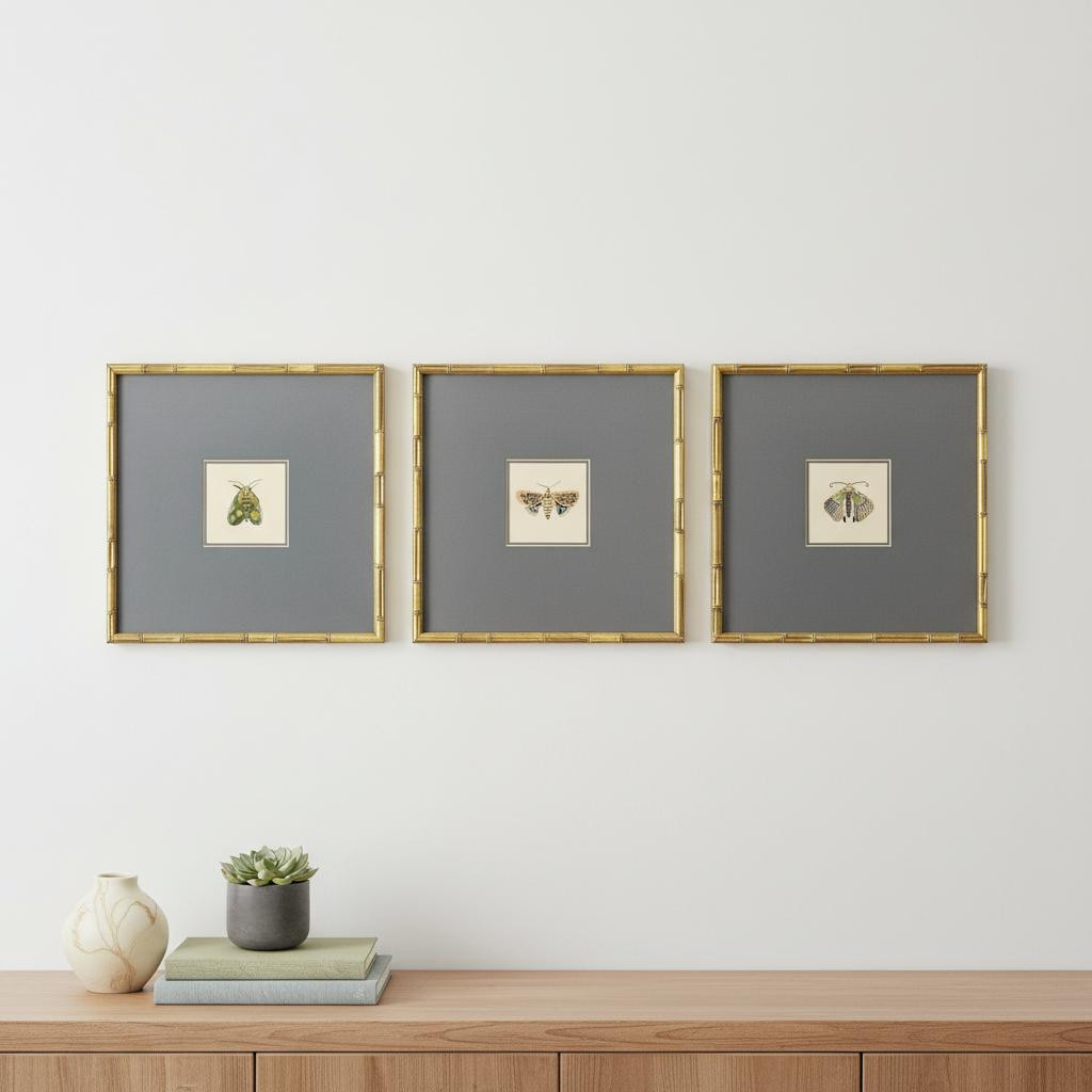 Unique and decorative, this set of three pastel moths ii gold framed wall art will leave a lasting impression. This butterfly inspired art will be a great addition to your space. Reproduced for you on paper, this hanging decorative accent will be a trendy and fashionable way to dress your walls. Hang on your wall to add some up to date fashion and decoration. Instantly liven up your space with this art that brings color and dimension to your walls. 17.00-inch h x 17.00-inch w x 2.00-inch d.