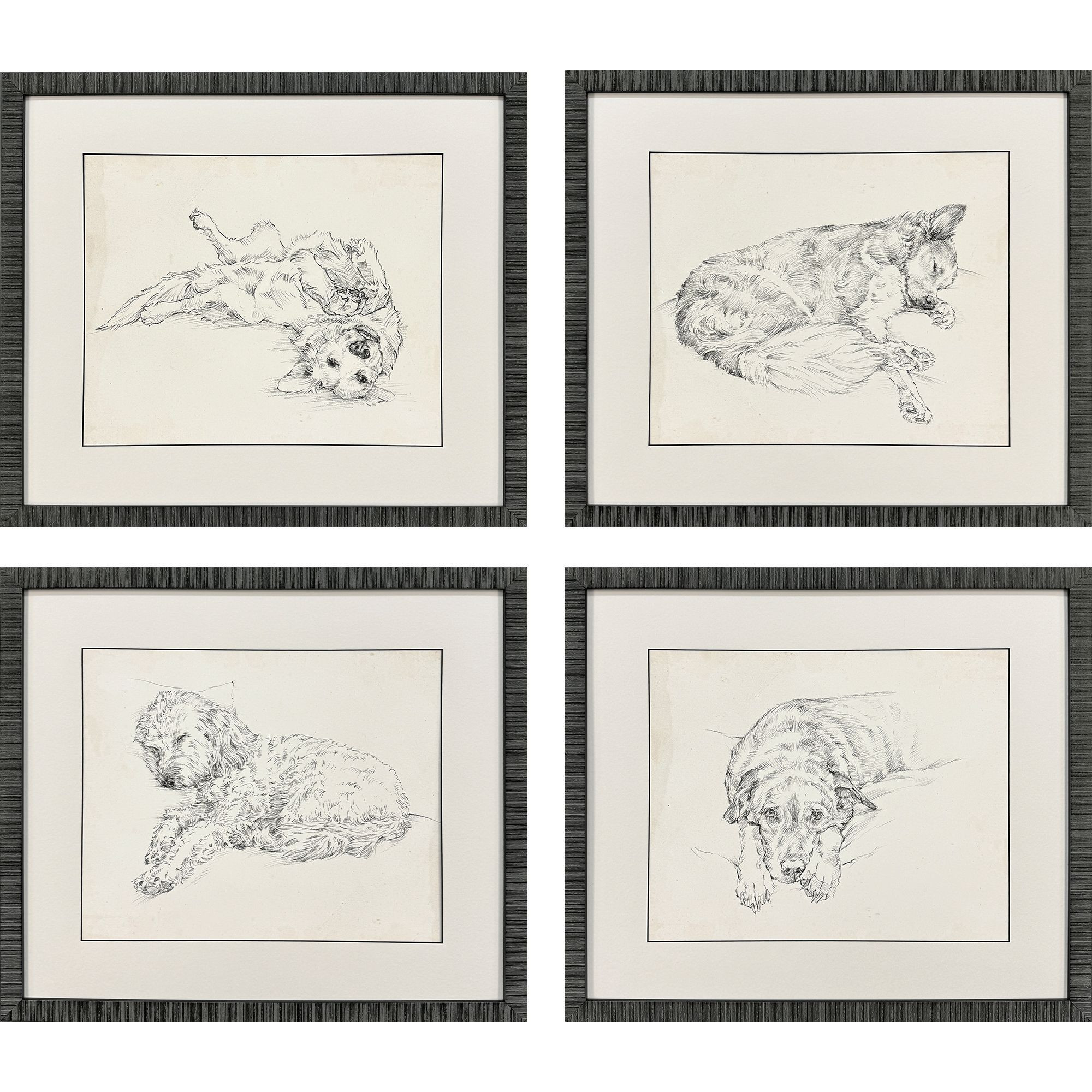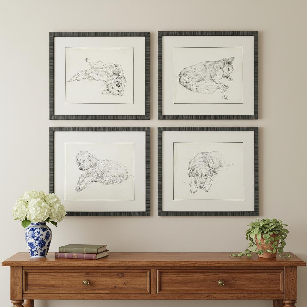 Dogs,Sketches,Giclee,Matted Image,Glass Front,Hand Assembled,Antique Dog Sketch S/4 |