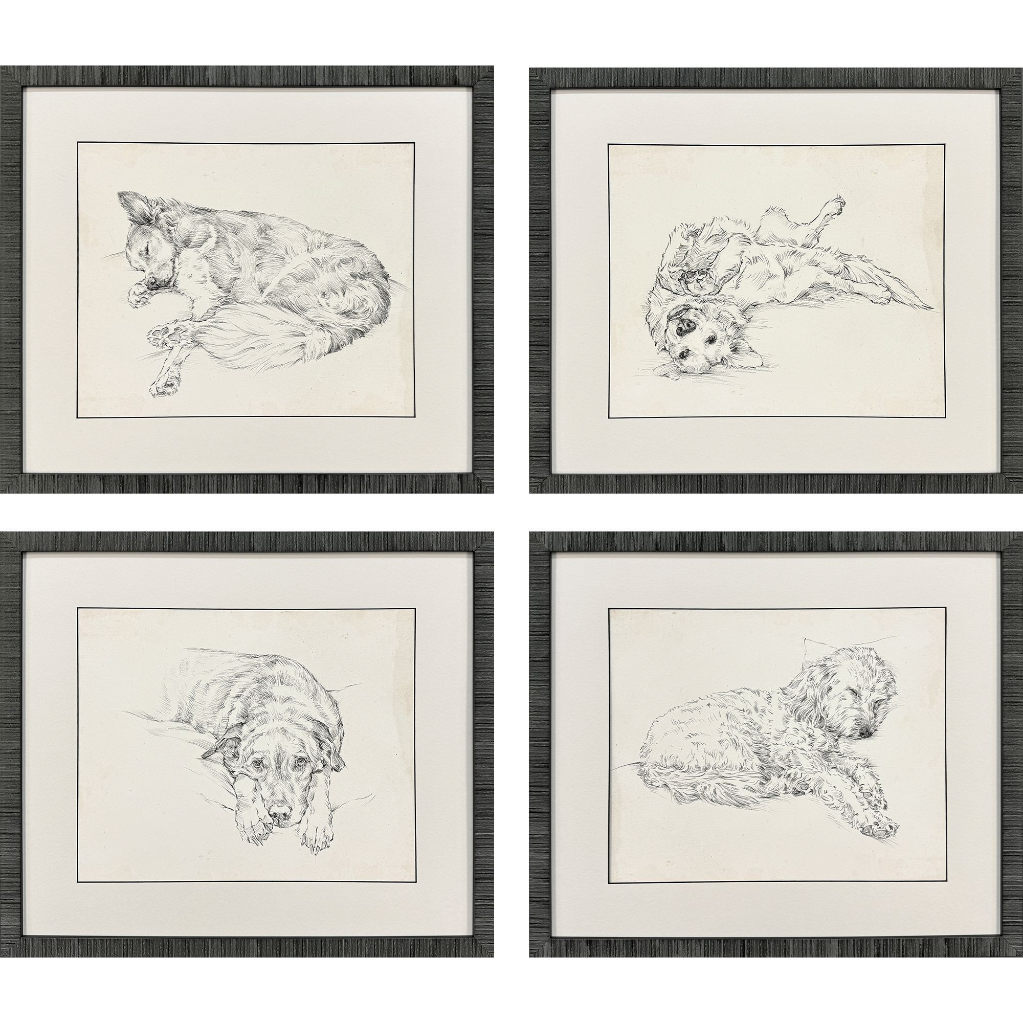 This set of four antique dog sketch distressed black framed wall art will add a beautiful decorative accent to your decor. This dog artwork is a great reminder of man's best friend. Reproduced for you on paper, this hanging decorative accent will be a trendy and fashionable way to dress your walls. Hang on your wall to add some up to date fashion and decoration. Utilize this opportunity to create a focal point in the room with this fabulous wall decor option. 22.00-inch h x 25.00-inch w x 2.00-inch d.