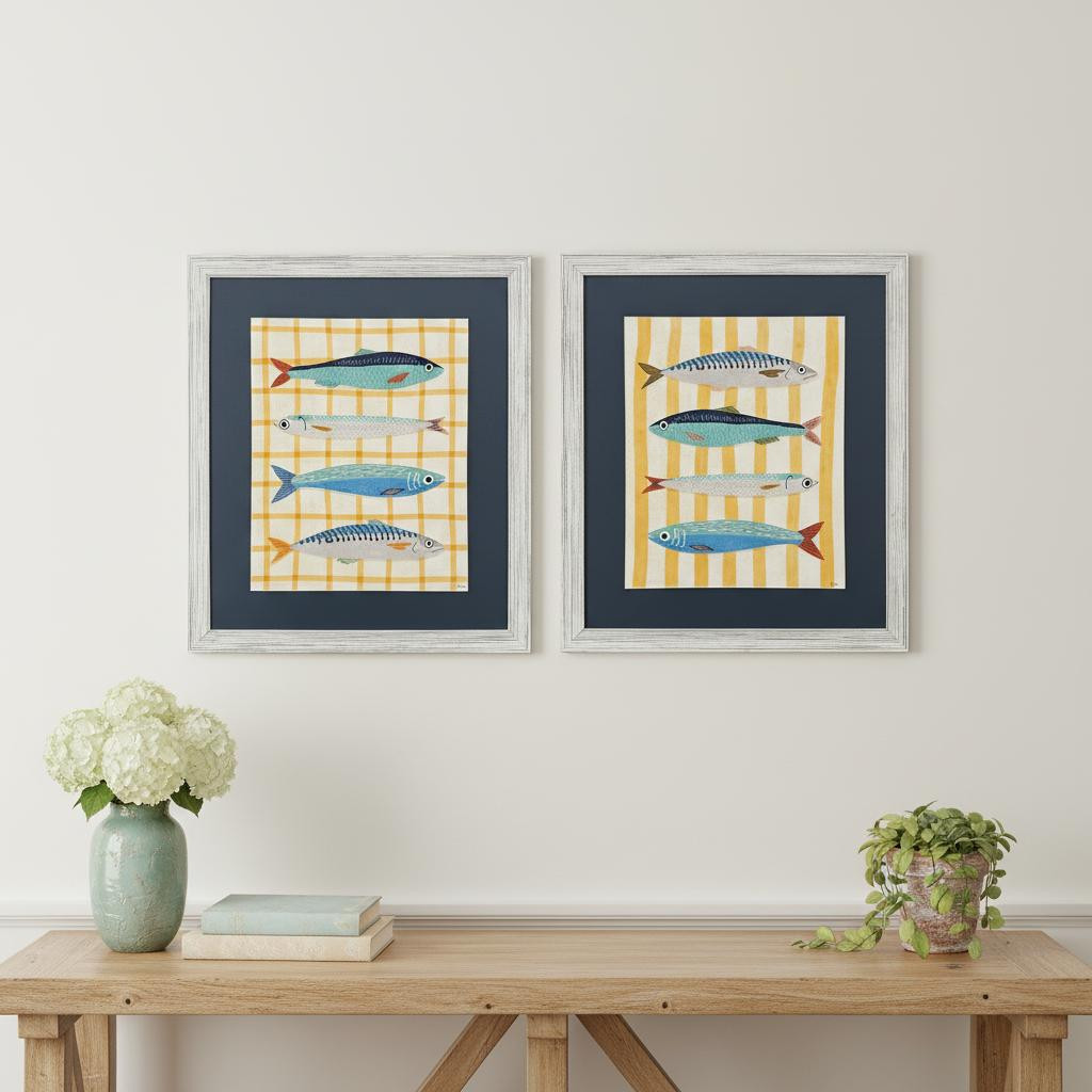 Bring some sizzle to your space with this eye-catching set of two little fish distressed white framed wall art. Update your walls with this great tropical sea life art. Reproduced for you on paper, this hanging decorative accent will be a trendy and fashionable way to dress your walls. Hang on your wall to add some up to date fashion and decoration. Instantly liven up your space with this art that brings color and dimension to your walls. 29.00-inch h x 25.00-inch w x 1.00-inch d.